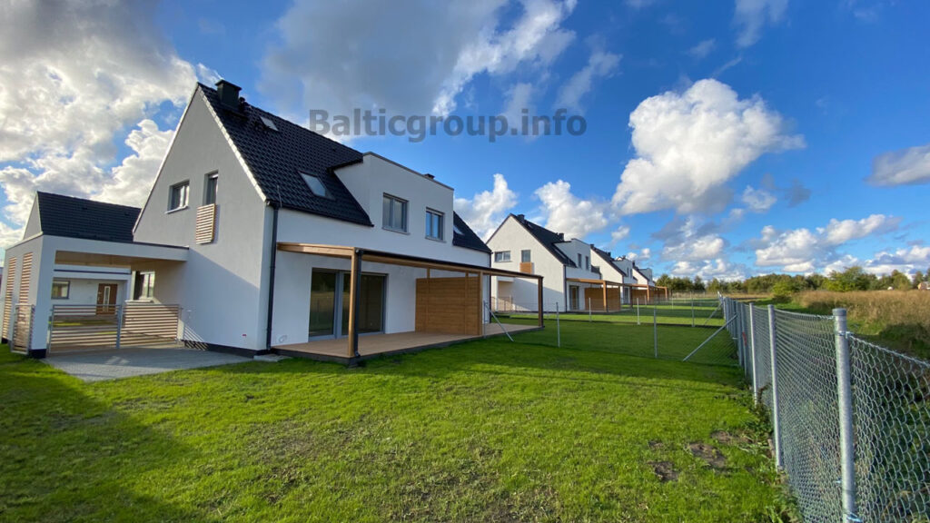 OPPORTUNITY!!! Promotion for one house ready for collection in May. PRICE PLN 799,000 net. The buyer does not pay commission!!! A semi-detached house, situated on a plot of 300 m². The total area of the house is 79.38 m2 plus a brick carport. On the ground floor there is a living room with a kitchenette with an area of 31.89 m2 with access to the covered terrace, a toilet with a shower cabin (3.12 m2), a corridor (3.25 m2) and an auxiliary area (3.02 m2). On the first floor with a total area of 37.63 m2 there are 3 rooms and a bathroom. The area of the estate is fully closed and developed (internal roads made of gravel, lighting). The house is ready for sale for the summer season of 2024. Building finishing standard Exterior finishing of the house: – slab foundation (reinforced concrete slab 25 cm thick, on a sand bed and a layer of 10 cm thick XPS polystyrene) – external walls made of 500 aerated concrete – 15.00 cm polystyrene insulation – silicate/silicone plaster – PVC windows (three-glazed package), electrically operated external roller shutters, roof windows (without roller blinds) – reinforced external doors – cement roof tiles – sheet metal flashings – complete fence, roofed brick shelter with wooden elements – driveway and entrance to the house paved with concrete blocks – partially roofed wooden terrace – garden – leveling the ground, preparing the ground for grass – utilities supplied to the building (water, electricity, sewerage, fiber optic internet) Finishing the house inside – in developer's standard: – internal partition walls – 12 cm silk – internal gypsum plaster, category III (without filling and painting) – floors – concrete screed – internal winder stairs, made of reinforced concrete without construction – electrical installation including: installation of accessories (excluding lighting fixtures and lamps), IT cable, alarm installation, TV cable distributed in the building (2 TV sockets) – conduits connected to the roof for photovoltaic installation – heating installation including: underfloor heating – heating cables on the ground floor and in both bathrooms, 1 convection heater in the rooms on the first floor, 1 ladder radiator in the bathrooms, air conditioner with heating and cooling function – distributed water and sewage installation *19,000 zloty. net – price for a share in a road plot with full development* *23% VAT should be added to the offer price. It is possible to recover the entire VAT, also for foreigners!!! We invite you!