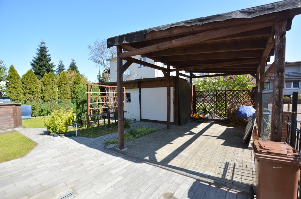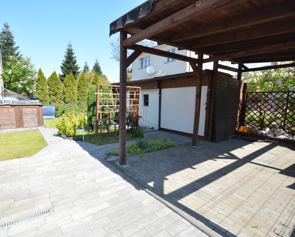 A semi-detached single-family house for sale, located in the charming district of Szczecin Zdroje. A few minutes walk to Emerald Lake and the Beech Forest. The property has a usable area of 110 m², a total area of approximately 170 m². There are three independent apartments in the building. Basement level; independent apartment with entrance from the ground floor; living room with kitchenette, bathroom. Originally there was a garage, it is possible to restore it to its previous condition. Ground floor; 2 rooms, separate bright kitchen with window, bathroom, corridor. Floor; two rooms, bathroom, toilet, kitchen, dressing room, balcony. The rooms have parquet floors that need to be refreshed. PVC windows. Kitchens and bathrooms with tiles, terracotta floors. Each apartment has separate heating from a two-circuit gas furnace. The building was built in the 1970s. Insulated with polystyrene. In the garden there is a farm building with an area of 14 m² and a covered terrace for relaxing. well-kept plot with numerous ornamental plants. Quiet and peaceful street. Nearby there are public transport stops, a hospital, school, kindergarten, post office and shops. An ideal place to live for a multi-generational family or to rent.
