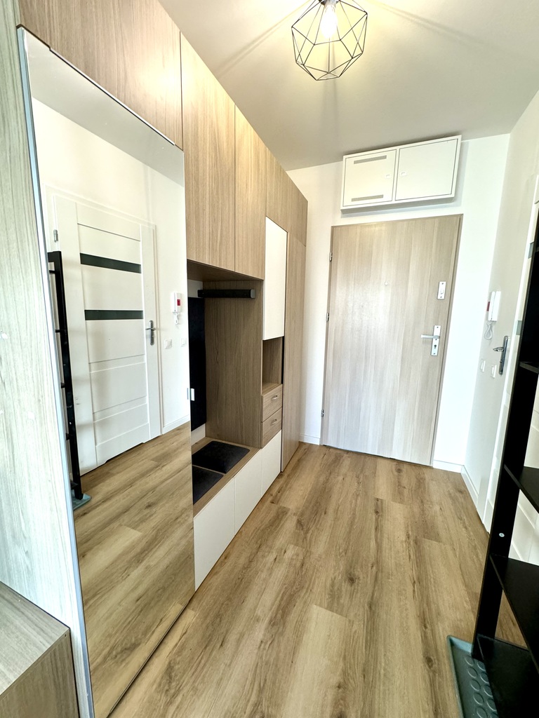 A very nice, sunny, two-room apartment with a balcony for rent in a new housing estate in Rajków. The property is located on the first floor of a low, three-story building. An estate with numerous plants, a playground, parking spaces (outdoor parking space included in the rental price) and the "Żabka" store. Intimate, low-rise buildings with a green patio in the middle of the estate. There is a nursery, kindergarten and a school with a playing field nearby. The area of approx. 43 m2 consists of: – a living room with a balcony, – a bedroom equipped with a bed and a wardrobe, – a kitchenette equipped with high-quality household appliances, – a bathroom with a washbasin, toilet and a glass shower cabin, – a corridor with built-in wardrobe. Minimum rental period 1 year. Occasional rental agreement. Preferred non-smoking tenant, no pets. Fees: – deposit PLN 2,200, – rent PLN 2,200, – fees to the manager PLN 500 + electricity. I invite you to the presentation. EXCLUSIVE