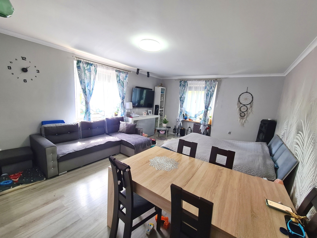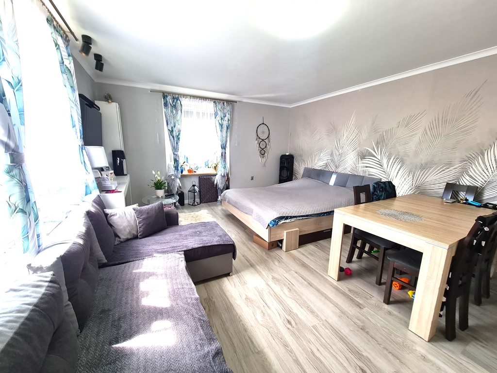 We offer for sale a spacious and well-arranged apartment with a balcony on the first floor in a tenement house in Police. The area of 114.62 m2 includes: four rooms, a kitchen, a bathroom, a toilet, a hall and a utility room on the ground floor of approx. 14 m2 with a window and a door overlooking the garden. Additionally, two basements with an area of 30.80 m2 and 9 m2. At the back of the house there is a part of the garden for your own use, with the possibility of renting a larger part of the area from ZGKiM. The apartment has been partially renovated: the electrical and gas installations have been replaced, a new Junkers stove for heating water, partially replaced window frames, and panels on the floors in two rooms. The remaining rooms require renovation. The rent to ZGKiM is approximately PLN 1,750 per month and includes heating fees without dividers settled once a year, renovation fund, cold water and participation. The property requires financial outlays, but it has huge potential. The building is located in the center of the housing estate adjacent to the Wkrzańska Forest. The property includes a fenced area where you can park your car and provide space for recreational purposes. The area around the tenement house is fenced. A big advantage is the location of the property, 150 m from the forest. Price is negotiable. I recommend and invite you to the presentation.