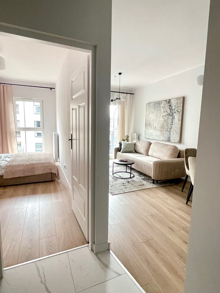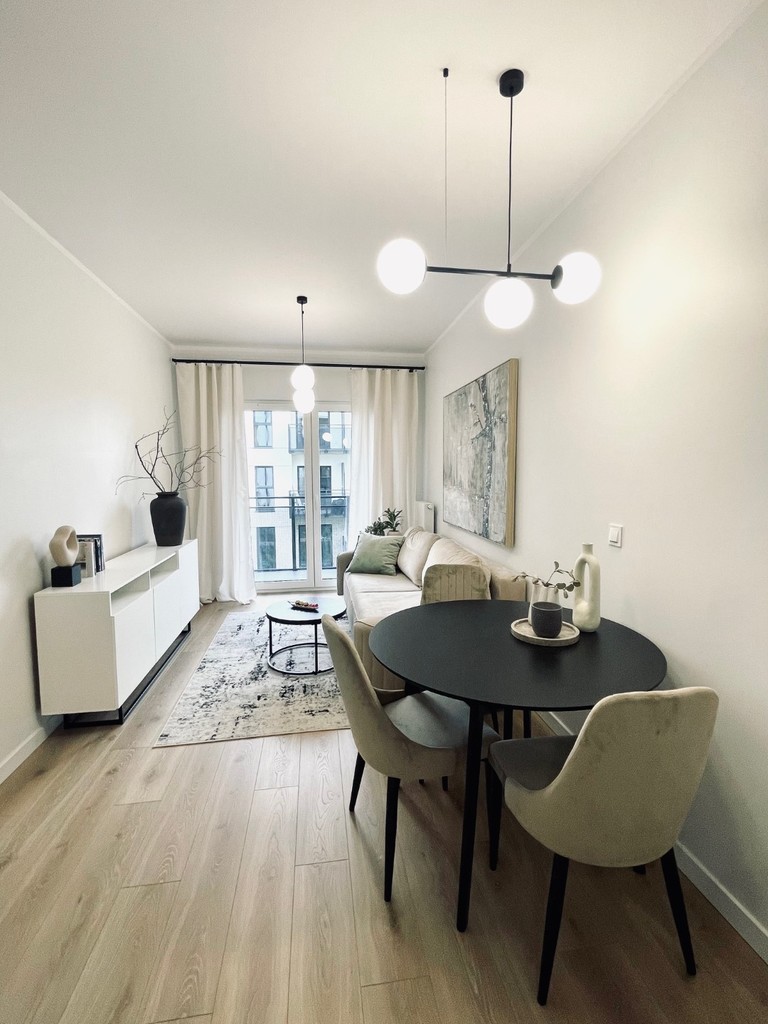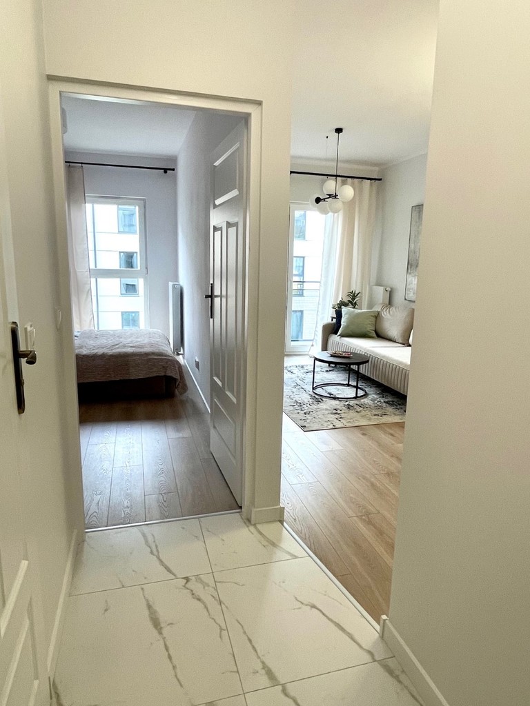 New, finished and equipped 2-room apartment with a balcony in a nice, comfortable housing estate with low-rise buildings. The estate is distinguished by its modern style and interesting arrangement. The apartment is located on the 1st floor in a building with an elevator. It is bright and sunny, with a large balcony facing east to the quiet side of the estate. The premises are ready to move in and fully equipped, and do not require any renovation costs. Very attractive location. The area is well-kept and green, there are many shops nearby, including Lidl and Netto, 2 primary schools, a kindergarten, a gas station, playgrounds, a fitness center, a swimming pool, a pharmacy and many other service points, as well as bus stops of lines 87 and 99 going to Plac Rodła, to the city hall to the railway/bus station. Monthly fees are PLN 393. Free immediately.