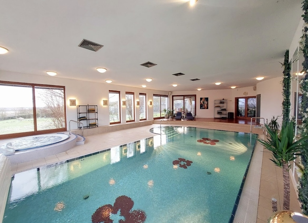 The residence is equipped with a private swimming pool, sauna, jacuzzi and exercise space. This zone is accessed from the dining room through the vestibule, which also leads