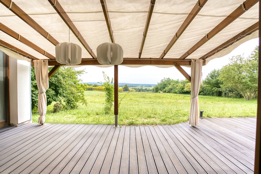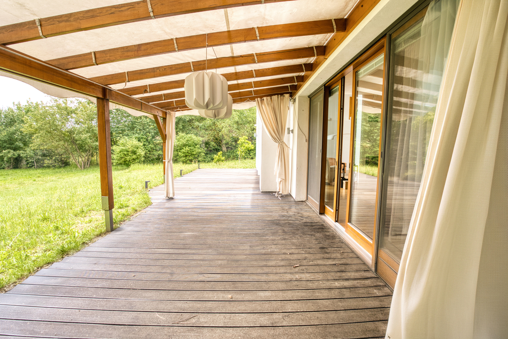 Walking towards the entrance, we admire a charming porch with an area of 31.48 m².