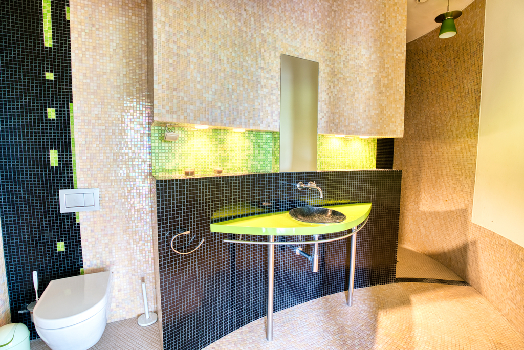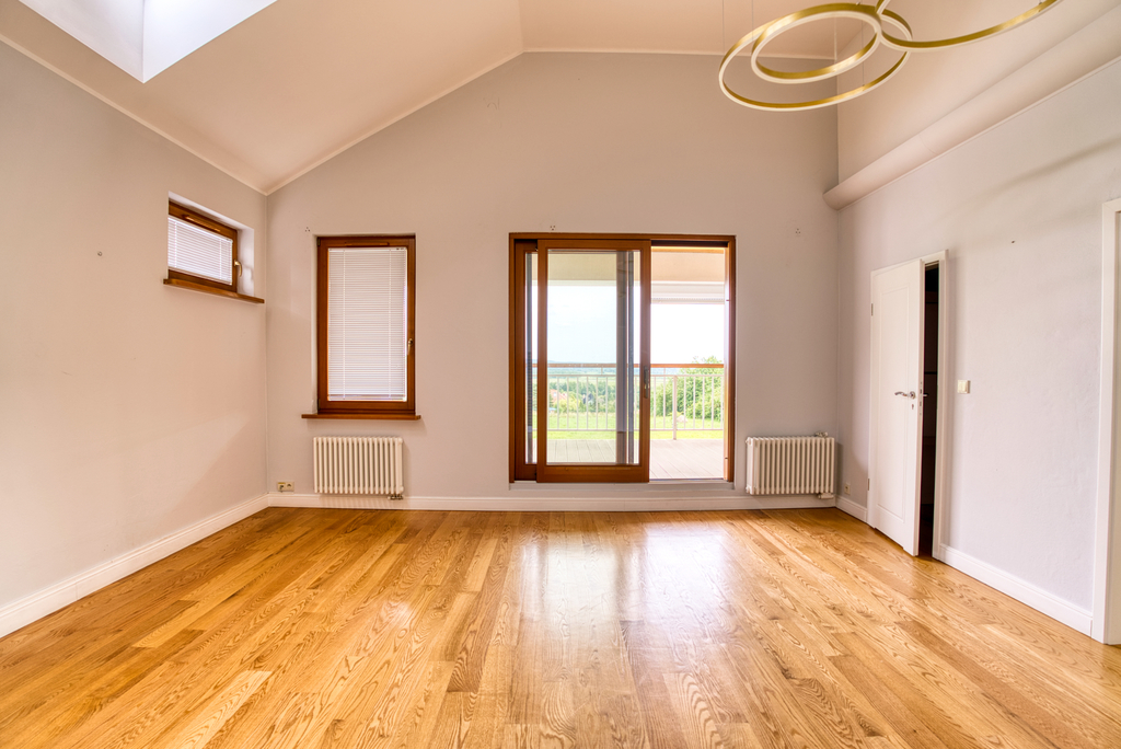 The second master bedroom is located in the attic, accessed via stairs leading through the mezzanine. Bedroom, area: 28.14 m², characterized by high roof slopes, creating a pleasant atmosphere. At the highest point of the room, reaching 4.09 meters, you can feel space and freedom. The private bathroom, with an impressive area of 15.99 m², can easily be called a bathing room, offering exceptional comfort and luxury. The height of the bathroom room from 2.86 to 3.41 m adds a feeling of spaciousness and elegance.