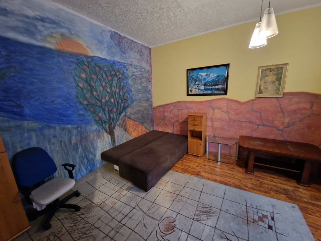 Studio apartment in an outbuilding in the Center, on the ground floor. Very well connected point (tram stop no. 7 and 5 near the block). Room approx. 18 m2, panels on the floor. PVC windows throughout the apartment. Kitchen (approx. 5 m2) with a window, leading to a small bathroom (2 m2) with a toilet (shower) lined with older type tiles. From a corridor measuring approximately 4 m2, there is an entrance to a hiding place (1 m2), currently serving as a drying room and laundry room (there is no washing machine visible in the photo). Gas heating control via an electronic panel. Release immediately. The apartment is partially furnished, some furniture in the kitchen and a single piece of furniture in the room. Additional fees: community rent with advance payment for water PLN 205.76 + electricity + gas. Deposit PLN 1,900. Possibility of renting for companies for employees. Very basic standard, needs renovation. We have the keys.