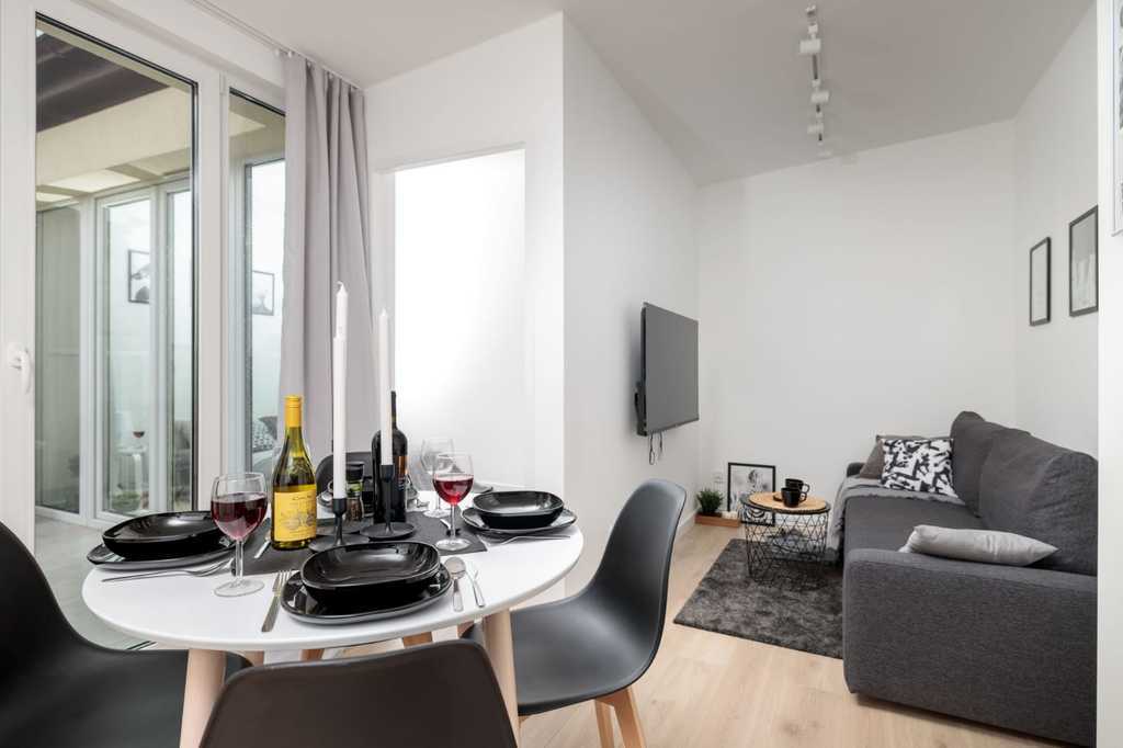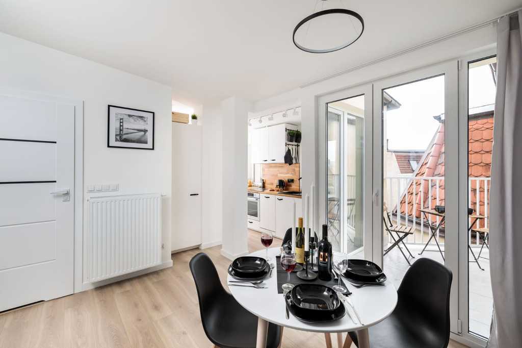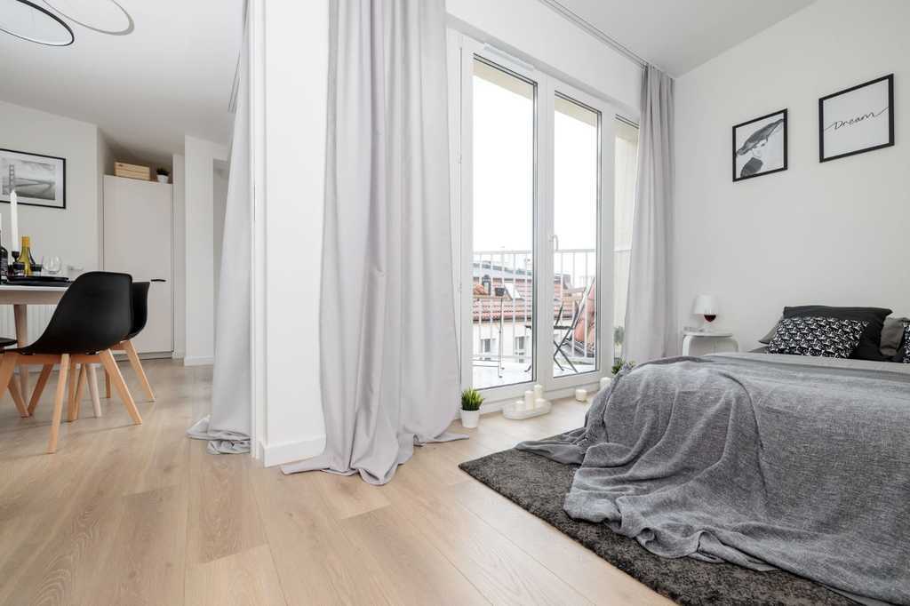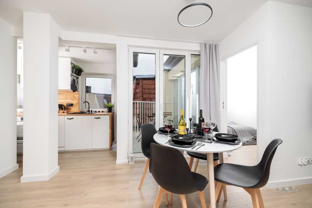 A new, luxurious 2-room apartment for rent, located at al. Pope John Paul II (al. Fountain) in the very center of Szczecin. Great, very well connected location! Right next to it are numerous restaurants, cafes, ice cream parlors, shopping centers, shops, pharmacies, banks and public transport stops. The area is ideal for young couples and singles. Everywhere nearby! Nearby are Jasna Błonia, Kasprowicz, Gen. Andersa, Żeromskiego and Wały Chrobrego parks. The area of 38.27 m2 consists of: – living room with kitchenette, – bedroom, – bathroom with toilet, – hall. The property has not been rented yet. The apartment is in perfect visual and technical condition, clean and well-kept. Rooms fully furnished. Functional living room, divided into 3 zones: kitchen, dining and lounge. The bedroom is very well lit. Both rooms have access to a large balcony. The kitchen is bright and fully equipped. Large bathroom with bathtub, toilet, washbasin and washing machine. The apartment is located in the attic (4th floor) of a tenement house. The staircase needs renovation, but it is clean and tidy. Public parking spaces nearby. The monthly rent is PLN 2,600. Additionally paid: administrative rent for the community approx. PLN 330, utilities – gas (heating and hot water) and electricity (according to consumption). A deposit of PLN 3,000 is required. Preferred conclusion of an occasional lease agreement for a minimum period of 1 year. I highly recommend and invite you to the presentation.