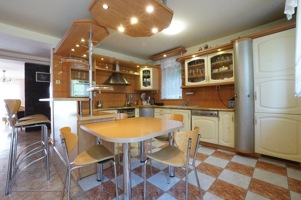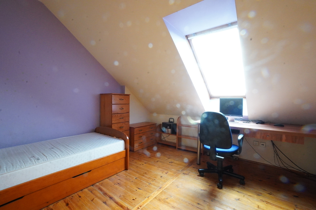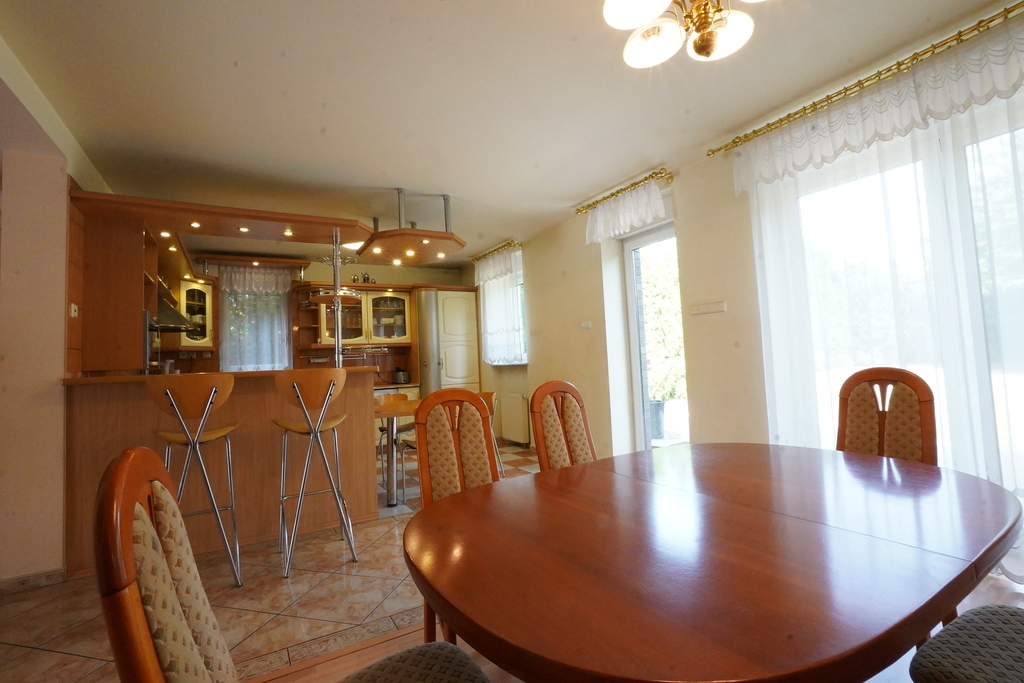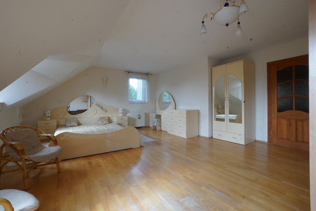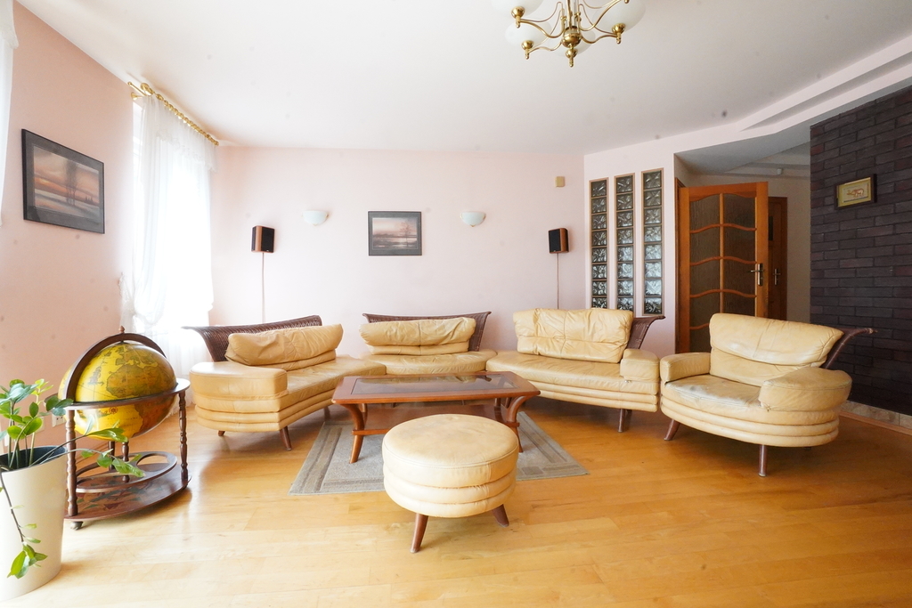 A detached, two-family, three-story residential house for sale (basement, ground floor, attic with mezzanine) with a gable roof and a ridge, located in one of the quieter districts of Szczecin – Osów. The property has a total area of 291.75 m2 (usable area of 174 m2).