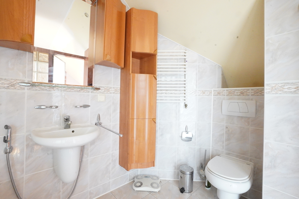 A big advantage is the terrace with a garden on the eastern side of the building. The house is located in a quiet and peaceful area, ideal for long walks. Quick access to the center. Nearby there is a bus stop, Netto store, equestrian center, Gubałówka winter sports center, excursion routes around the Arkoński Forest Park, among others. Quistorpa Tower and the Valley of the Seven Mills, a sports complex with an artificial turf pitch and a roller-skating track, and an outdoor gym. There is a kindergarten and a primary school nearby.