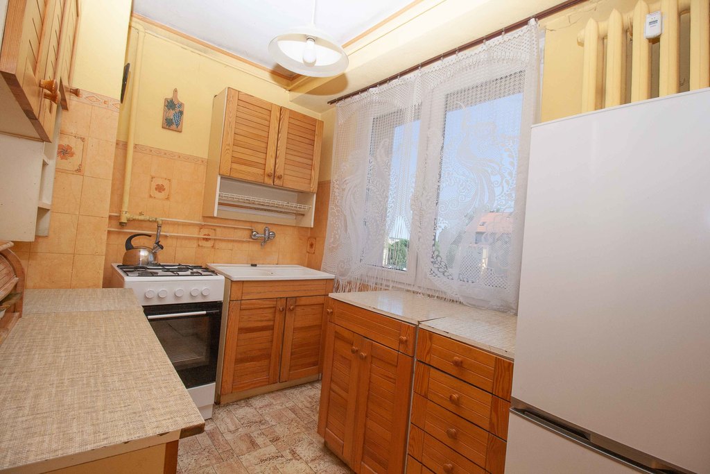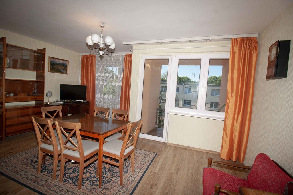 3-room apartment with a balcony In the center of the Dąbie estate – public transport stops, shops, restaurants in the immediate vicinity. The block is located directly next to the park, close to the swimming pool and city beach at Lake Dąbie. Apartment with layout, 3 independent rooms, living room with a balcony on the south side (approx. 21 m2), two bedrooms 11 and 9 m2. There are panels on the floor in the living room and carpet in the other rooms. Separate kitchen with window, approx. 7 m2, fridge, gas stove, old-style buildings. Bathroom (4.5 m2) with a bathtub in tiles and terracotta, a new washing machine. Heating and hot water from the municipal network, very warm apartment (annual returns approx. PLN 600). Rent: PLN 530 plus renovation fund: PLN 130. Gas available, basement included. Replaced windows throughout the apartment and panels in the living room. Old type furniture – may remain in the price