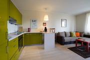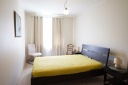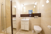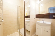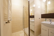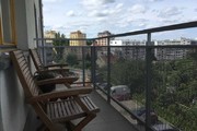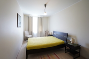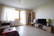 A 2-room apartment for rent with an area of 52 m2, consisting of a living room with a kitchenette, a bedroom, a bathroom, a hall and a balcony. The apartment is fully furnished and equipped. The kitchen includes: fridge with freezer, dishwasher, ceramic hob (4 burners), oven, kitchen hood, coffee machine, kettle, glass table, 4 chairs. Fully equipped with dishes, cutlery and pots. The living room has a comfortable sofa, a showcase, a coffee table and a TV. The bedroom has a double bed and a wardrobe. The bathroom is equipped with a shower, toilet, washbasin and a large mirror.