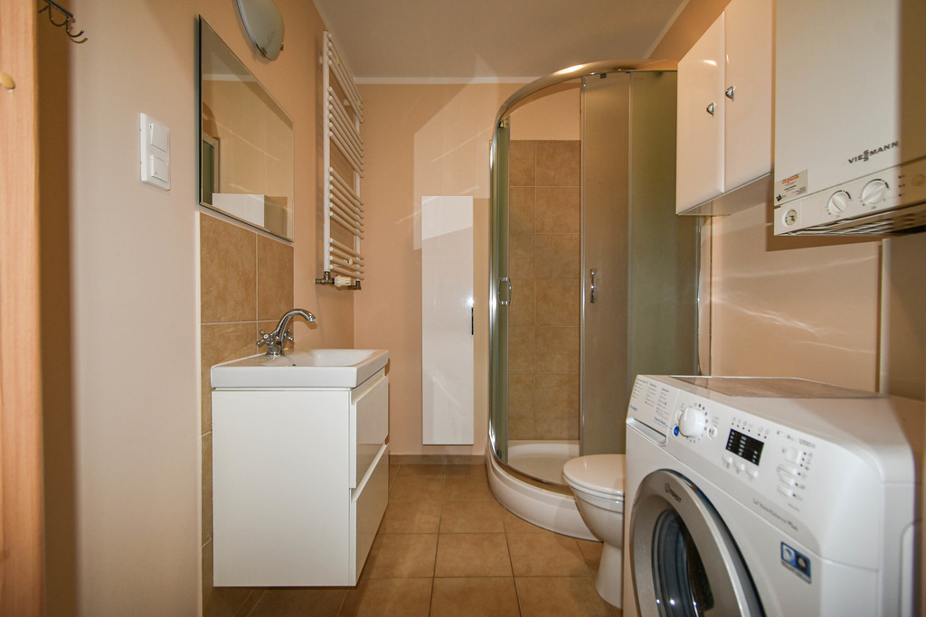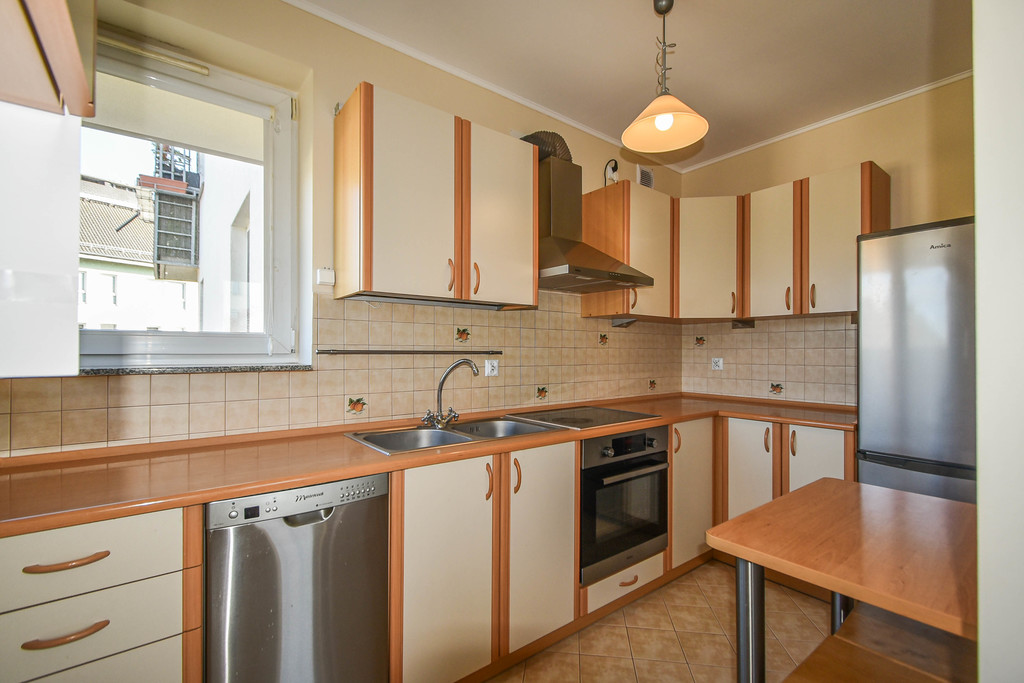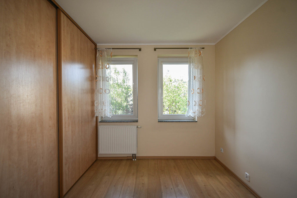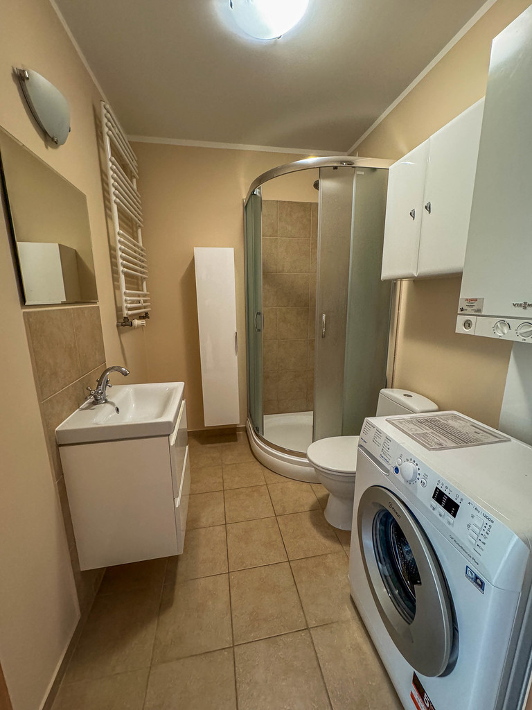 FOR SALE 2-room apartment with a balcony in a beautiful, green, quiet area in Warsaw, Szczecin! The apartment with an area of 44.83 m² includes a living room with a separate kitchen, a bedroom with a large sliding wardrobe, a bathroom and a balcony (currently roofed and built with opening windows, it is possible to restore the original condition) and a hall with a storage room and a shoe cabinet. The kitchen is equipped with furniture, oven, dishwasher, hood, electric hob, fridge, possibility of removing the wall and opening the kitchen to the living room with a kitchenette. In the bathroom, there is a shower, toilet, ladder radiator, washbasin. Low rent: PLN 240 + utilities according to consumption. Gas heating with thermostat. Possibility of adding furniture not shown in the photos (corner corner). in the large room, a double bed in the bedroom, 3 chests of drawers, a table with chairs). The apartment includes a basement. Gated estate, entrance through a barrier opened by remote control, parking spaces available at any time, long distances between blocks, lots of greenery. In the vicinity there is Netto, Biedronka, parcel locker, playgrounds, nursery, kindergarten, primary school and a bus stop. I INVITE YOU TO PRESENTATIONS