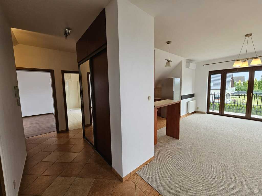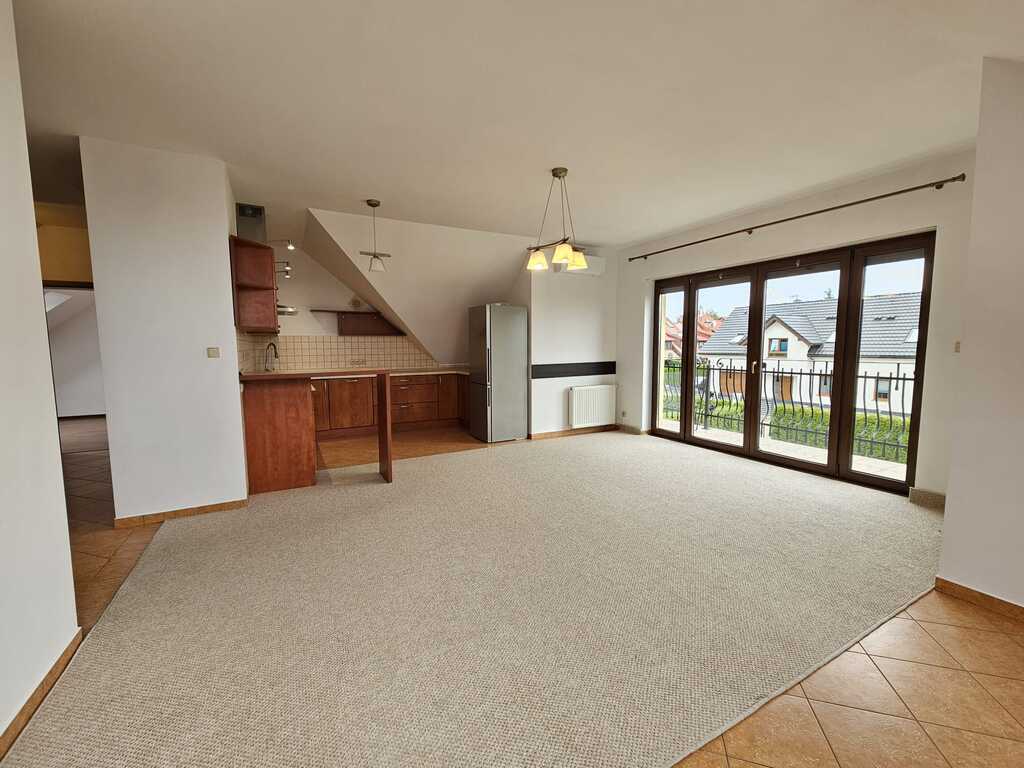 Spacious and comfortable 100m2 residential premises located in a 4-apartment house among low-rise detached buildings in Gumieńce. Each semi-detached house has two separate apartments with separate entrances to the house and apartments. Property in very good condition from 2010. The apartment is the first floor of the house and consists of a large, sunny 25m2 living room connected to a kitchenette, three bedrooms 17, 14 and 12m2, a large hall, bathroom and toilet. From the living room exit to a large terrace. Bathroom with a window of 12m2 with a bathtub and shower cabin. Kitchen furnished and equipped with household appliances. Two parking spaces on the property at the tenant's disposal. Unfurnished apartment. Non-rental premises. Gas heating. Additional fees: water, gas and electricity meters, garbage collection (approx. PLN 800 / month). Delivery date from July 1, 2025. Preferred clients without animals. Deposit 5000 PLN. Peaceful and quiet location. Good access to the city center by car, public transport within reach. We invite you!