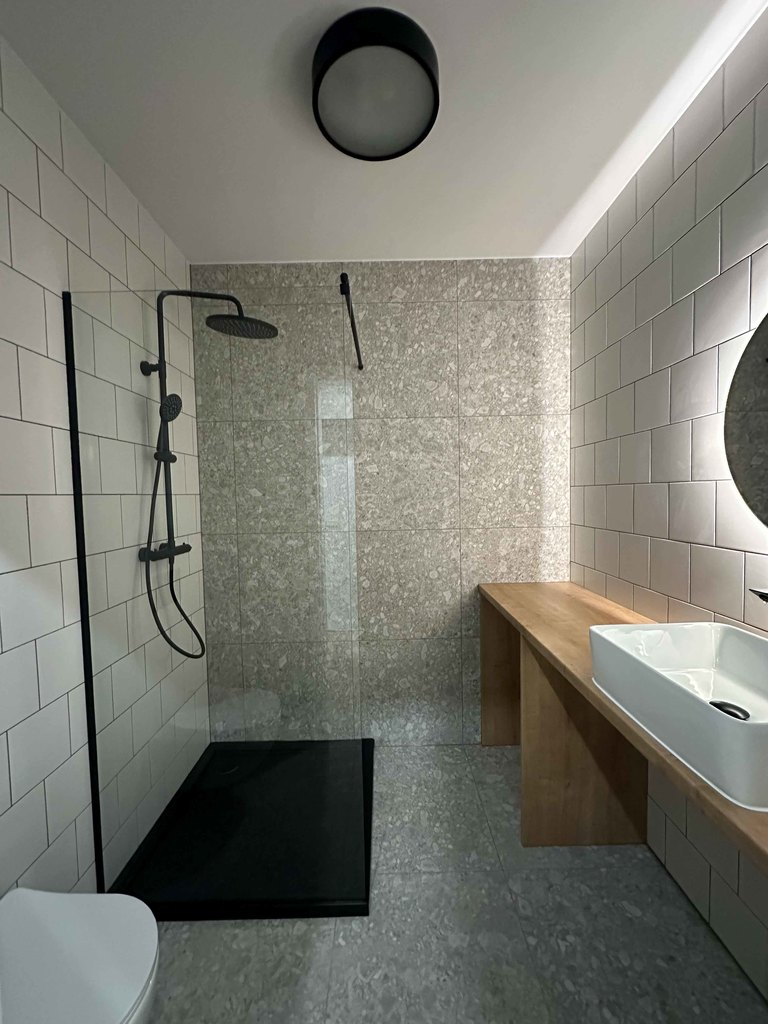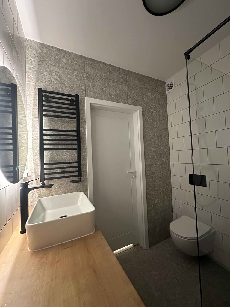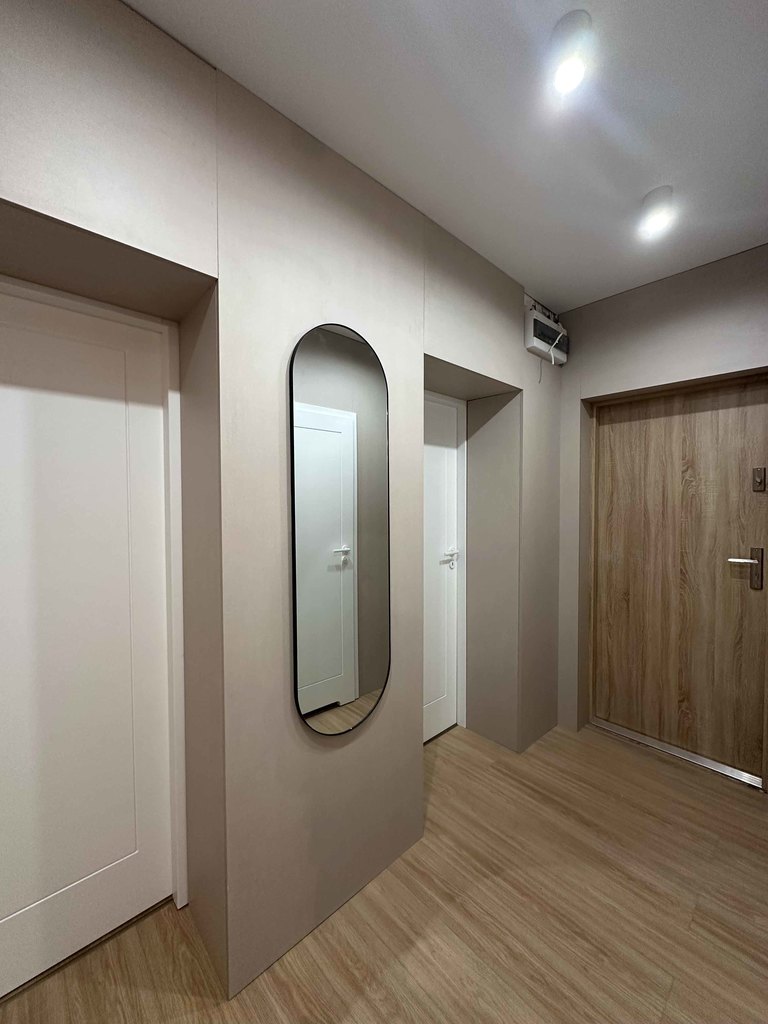 The property is located in a residential block on the outskirts of Trzebiatów. Perfect location – only 10 minutes by car to the nearest seaside town!!! Three-room apartment with an area of 67.8 m2 after renovation – requiring no own contribution, finished to a high standard. During the renovation, the water, sewage and electrical installations were replaced with new ones. New screeds and high-quality panels on the floor. New plaster and plaster on the walls. Radiators, doors and windows were replaced with new ones. Suspended ceilings and insulated with wool. Everything finished based on the interior design. The property includes: – living room with kitchenette (23.13 m2), utilities in the kitchen, ready for development, – bedroom (18.18 m2), – bedroom (14.68 m2), – bathroom with toilet ( 3 m2), tiles and terracotta, shower cabin, – hall (4.87 m2), – basement (4 m2). Rent to the manager in the amount of PLN 350 including renovation fund, garbage fee and advance payment for water. Heating and hot water from a two-circuit gas furnace. There is a basement. The building in which the apartment is located with a new facade and a staircase after renovation. Nearby there are shops – Biedronka, Netto, a bus stop, a pharmacy, a bank, a school and a kindergarten.