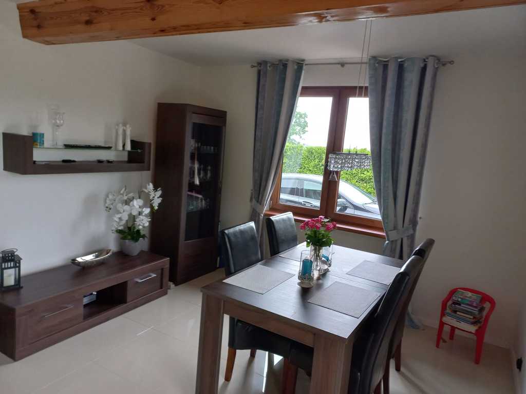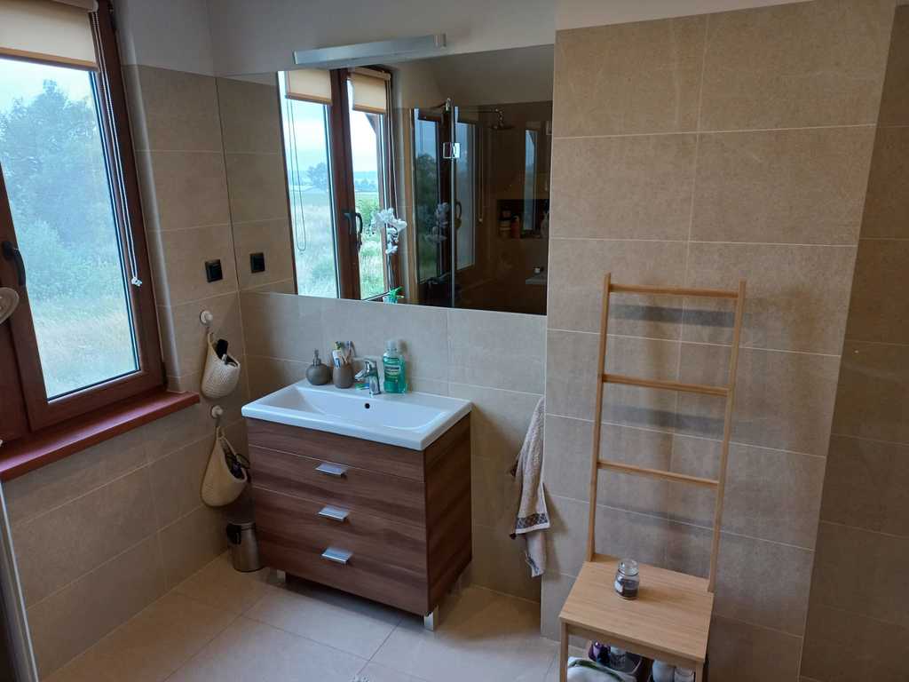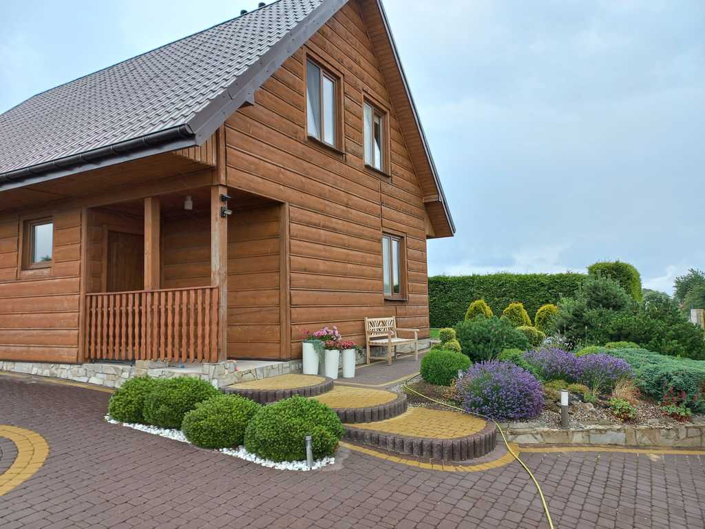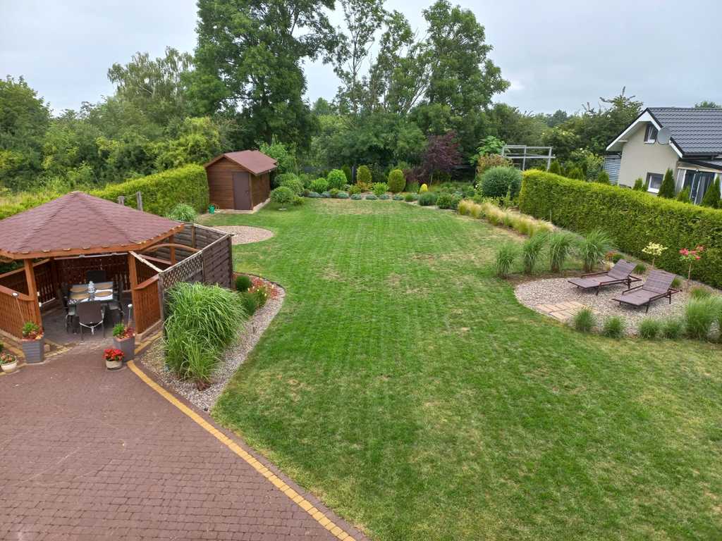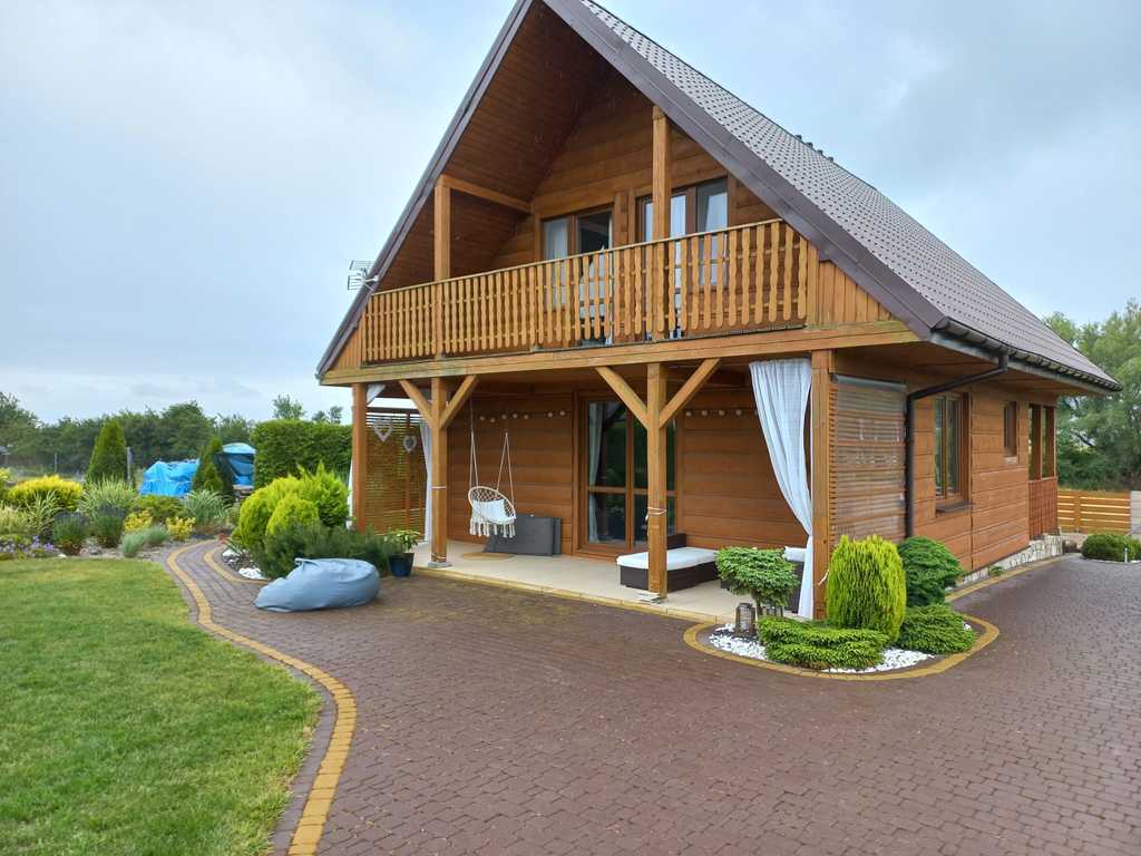 Zastań is a picturesque town about 3 km from Międzywodzie and the beach. This is an ideal location for people who value total peace, quiet and contact with nature, and at the same time proximity to the sea. The subject of the offer is a summer house with a usable area of 101.1 m2. The total area of the house is 121.4 m2. The house is built on a plot of 1,200 m2. Construction completed in 2021. The above area consists of: GROUND FLOOR: – kitchen – living room – pantry – toilet – utility room FIRST FLOOR: – 3 bedrooms – bathroom with toilet The house is fully finished and equipped. On the ground floor there is tiles on the floor, in the kitchen there is furniture with household appliances, in the living room there is furniture, a fireplace and a TV. There is a built-in wardrobe in the hall. Internal stairs – wooden. On the first floor there are panels in the rooms, each room has a double bed and a chest of drawers. The bathroom has a bathtub and a shower. PVC windows throughout the house. Heating with a fireplace with heat distribution. A beautifully landscaped plot of 1,200 m2. There are numerous trees, bushes and flowers planted on the plot. A big advantage is a separate place for a bonfire, a wooden farm house, a recreational gazebo, and a place for a jacuzzi. An additional advantage is the proximity to the lake. The lake is located within the estate. Each owner has shares in a plot with access to the lake.