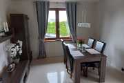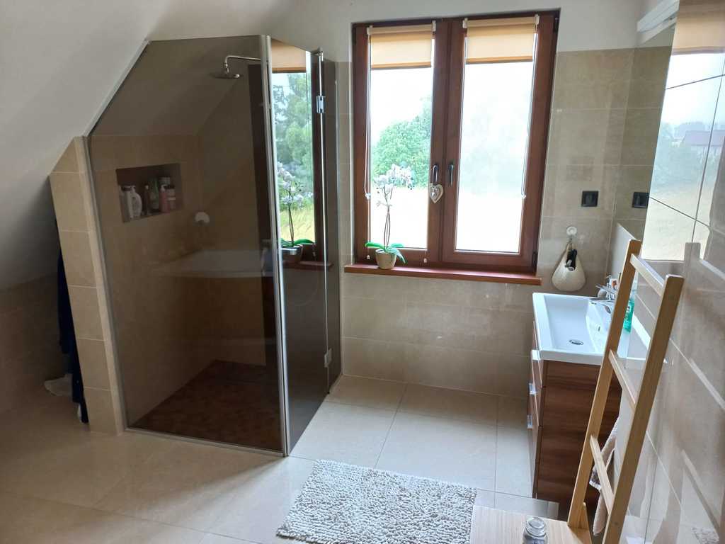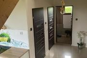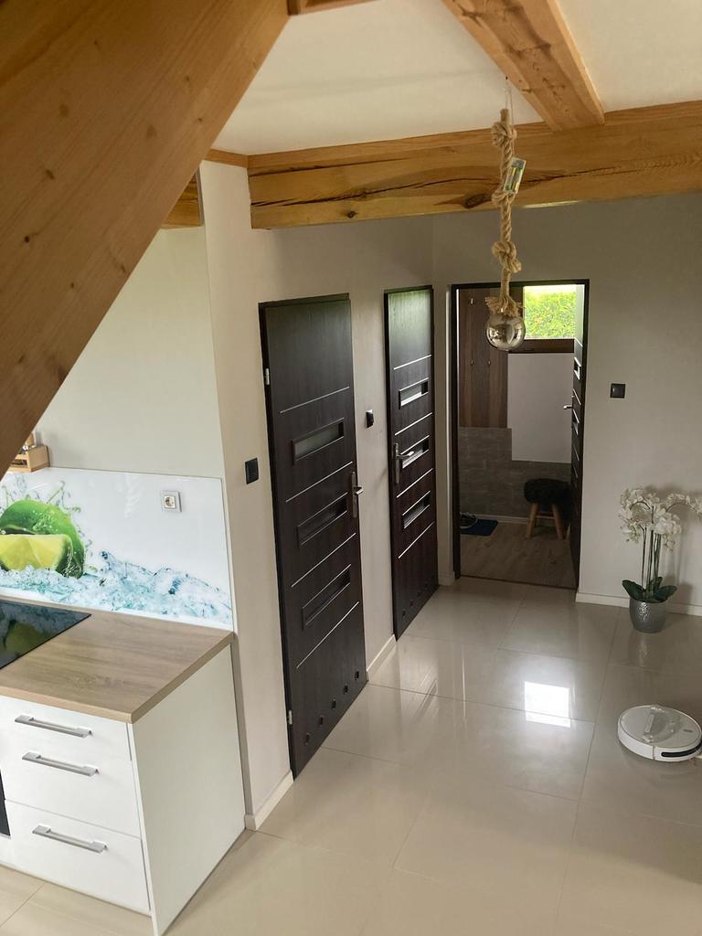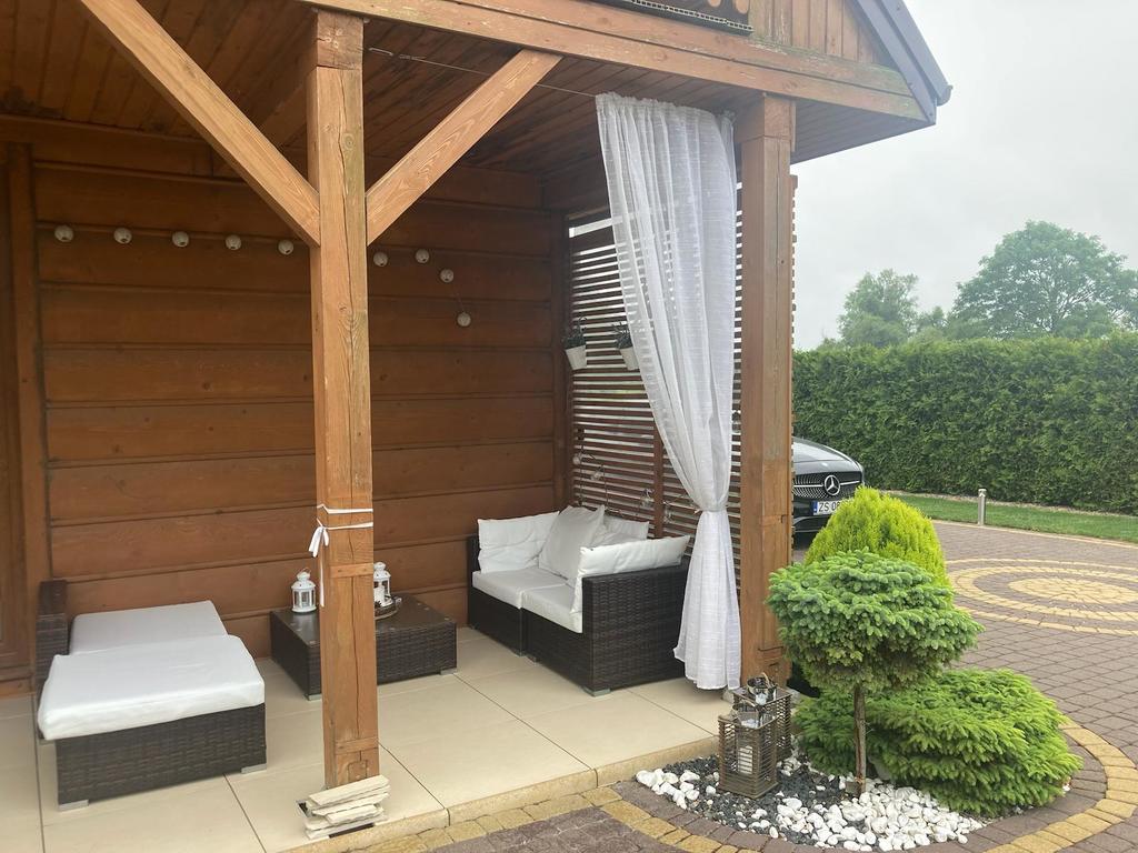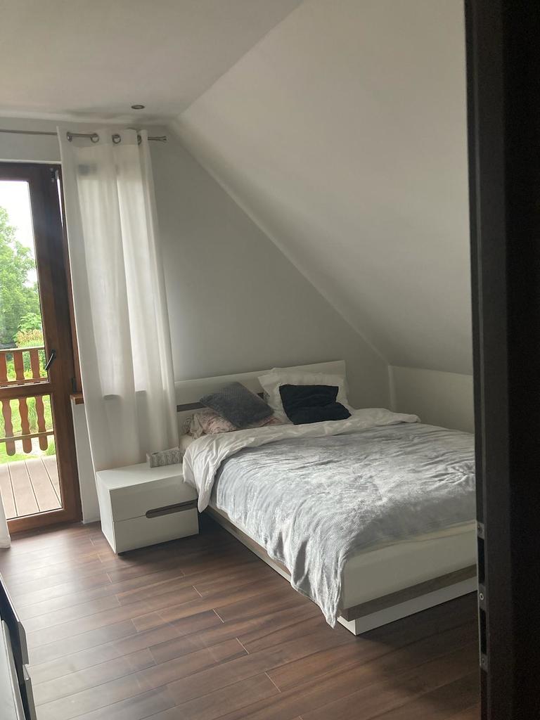 Zastań is a picturesque town about 3 km from Międzywodzie and the beach. This is an ideal location for people who value total peace, quiet and contact with nature, and at the same time proximity to the sea. The subject of the offer is a summer house with a usable area of 101.1 m2. The total area of the house is 121.4 m2. The house is built on a plot of 1,200 m2. Construction completed in 2021. The above area consists of: GROUND FLOOR: – kitchen – living room – pantry – toilet – utility room FIRST FLOOR: – 3 bedrooms – bathroom with toilet The house is fully finished and equipped. On the ground floor there is tiles on the floor, in the kitchen there is furniture with household appliances, in the living room there is furniture, a fireplace and a TV. There is a built-in wardrobe in the hall. Internal stairs – wooden. On the first floor there are panels in the rooms, each room has a double bed and a chest of drawers. The bathroom has a bathtub and a shower. PVC windows throughout the house. Heating with a fireplace with heat distribution. A beautifully landscaped plot of 1,200 m2. There are numerous trees, bushes and flowers planted on the plot. A big advantage is a separate place for a bonfire, a wooden farm house, a recreational gazebo, and a place for a jacuzzi. An additional advantage is the proximity to the lake. The lake is located within the estate. Each owner has shares in a plot with access to the lake.