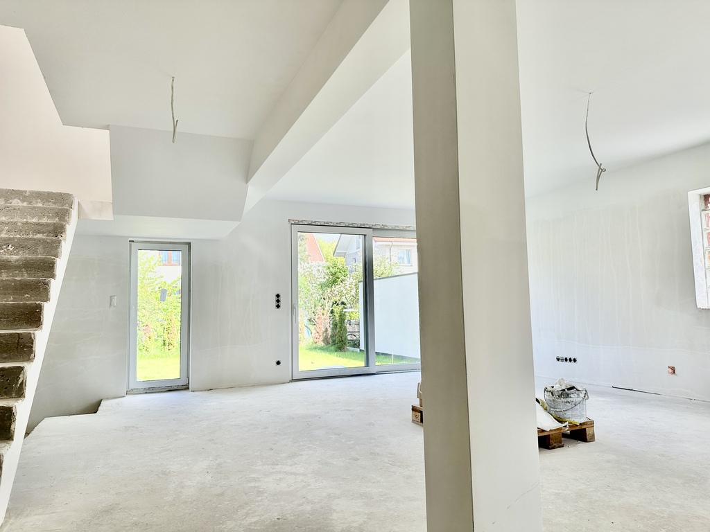 A new semi-detached house for sale, finished, with a total area of 210 sq m. There is a garage on the ground floor, and a living room with a kitchen, hall and toilet on the ground floor. On the first floor there are 3 rooms and a bathroom. The attic is one large open room. The house is located on a plot of approx. 332 sq m. A garden with well-kept greenery in the form of grass and tree plantings around the plot. On the living room side there is a terrace with garden furniture, beautiful flowerpots with micro trees and a sun-shading pergola. A cozy living room with a fireplace, plenty of relaxation, connected to the kitchen and a table for shared meals. The kitchen is fully equipped, bright, with a window. Hall and toilet downstairs. As for the first floor – there are 3 spacious rooms and a bathroom. The house has an already arranged attic, which houses a large bedroom. The whole is very tasteful, kept in consistent, light colors. The property was built according to new technology. Foundations, walls, floors insulated with polystyrene 15. The attic is insulated with 20 cm stone wool. The entire building has gas underfloor heating (including the garage), which can be supplemented or replaced with a fireplace on cold days. The whole has triple-glazed windows with HS balcony windows. The owner has for sale next to this property, another "semi-detached" property in developer condition with an area of 185m2 on a similar plot. It is possible to buy a capacity. or together, or exchange option. I cordially invite you to the presentation. Additional information