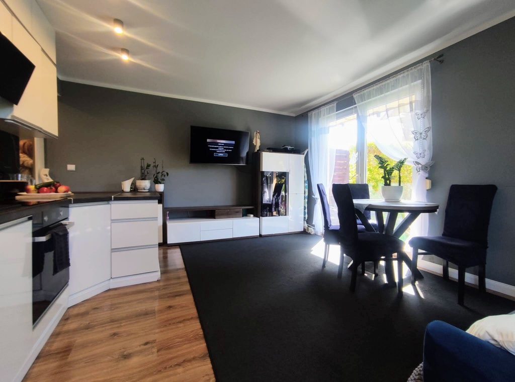 A beautiful 3-room apartment for sale, with a usable area of 51.56 m2 and a large garden. The property is located in a quiet, quiet housing estate of Zieleniewo. Apartment in a multi-family building, on the ground floor with its own parking space next to the building, which consists of: – living room with kitchenette with access to a large garden (approx. 90 m2) – 2 bedrooms – hall – bathroom with toilet Very nicely finished apartment, sold together with furniture and equipment. Low rent costs, i.e. PLN 450 with advance payments for water, waste disposal, renovation fund, property insurance. The apartment includes a parking space (included in the purchase price). The property is ideal for people who are looking for a place in peace and quiet, with their own piece of greenery and proximity to the infrastructure of the city of Kołobrzeg. The apartment is sold with all equipment as in the photos. The garden, covered with vegetation on all sides, provides residents with privacy, silence and sun until late evening. Nearby there is a market, a public transport bus stop, shops, a gas station, a kindergarten, an amusement park, and the S6 route. Offer available only with us. We invite you to the presentation.