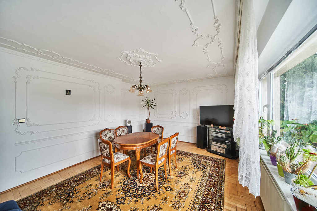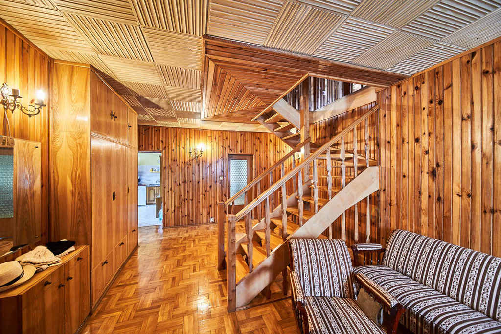 It is a two-story house with an attic and a ground floor with a separate entrance. The building’s communication route is an internal staircase running from the basement to the attic. The stairs and wooden parquet floor, the wainscoting of the corridor walls and all doors on the ground floor, first floor and attic are made of coniferous wood. Sewage and city water.