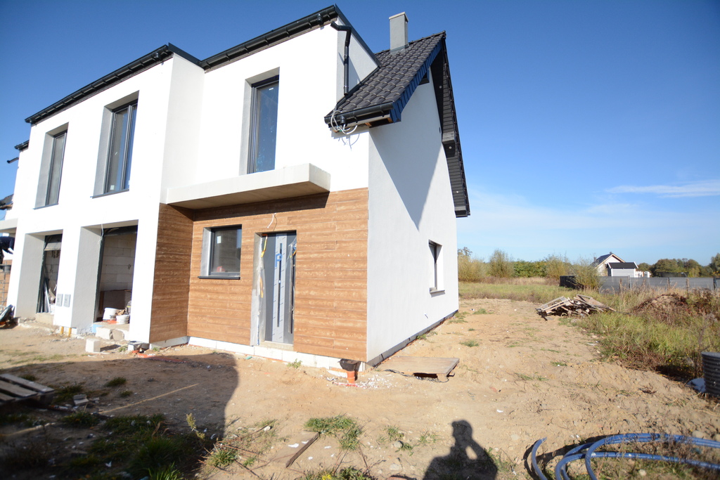 A new semi-detached house for sale in Dobra Szczecińska. The property includes a garden with an area of approx. 440 m2. House standard: • electrical, multimedia and IT installations • Sanitary, water and sewage installations – waste tank with an area of 10m3 • Rainwater tank area. 10m3 • Heat recovery system • Underfloor heating in every room except the garage. • Gas stove with built-in water tank – Saunier Duval • PVC three-glazed window joinery, warm installation – Veka profile • prepared boxes and wiring for external roller shutters on the ground floor • External, safe doors – KMT • Roof insulation 10 + 10 cm and ceiling insulated 10 cm • Walls and ceilings: gypsum plaster • Concrete floors • Poured, reinforced concrete stairs • Remote-controlled sectional garage door • Facades – mineral plaster • Attic floor lined – OSB boards (approx. 20 m2 of surface) • Wooden, foldable attic stairs • Attic ceiling, plasterboards blurred at the joints • Land development – driveway and entrance to the building paved with concrete cubes, • Fence (without front) The area of 110 m2 consists of: – living room with kitchenette with an area of 32m2 – toilet area 2.5 m2 – vestibule with an area of 3.84 m2 – garage with an area of 16.84 m2 Floor: usable area (total area) – bedroom with an area of 11.64 m2 (13.7 m2) + wardrobe area 2.57 m2 – room with an area of 14 m2 (14 m2) – room with an area of 9.75 m2 (9.19 m2) – laundry room with an area of 1.62 m2 (1.62 m2) – bathroom 6.44 m2 (7.16 m2) – corridor with an area of 5.1 m2 (5.1 m2) The property is located in a quiet place, surrounded by low-rise buildings of new houses. Exclusive offer. I invite you to the presentation.