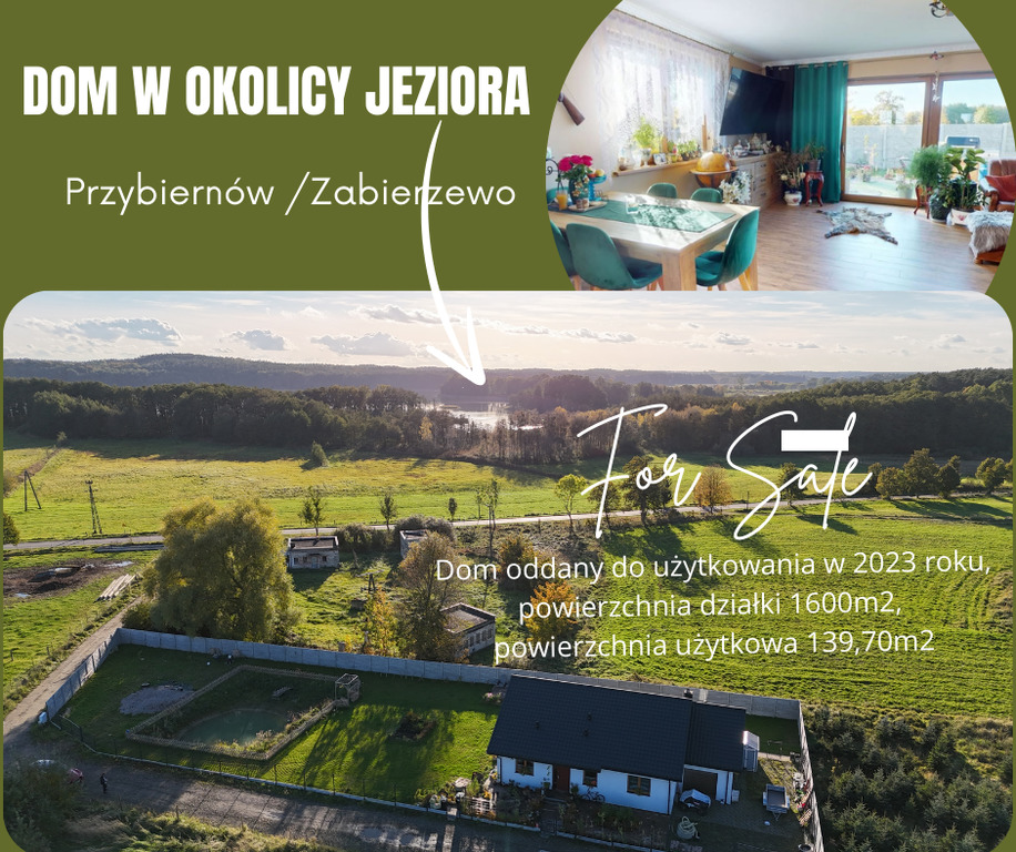 There is a charming small pond on the plot, and the distance to Lake Przybiernowskie