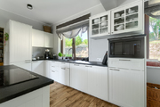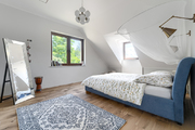 The house impresses with its space right from the entrance. The ground floor consists of a large living room with a fireplace, from which we exit to the terrace and garden, a spacious kitchen with an island and dining room, an additional guest room, a large bathroom, a pantry and a hall.