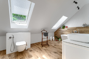 The house was put into use in 2020, built of high-quality materials, energy-efficient, covered with ceramic roof tiles, with high-class triple-glazed wooden windows, equipped with a modern, efficient deep-well heat pump, a recuperation system and a 10 kW photovoltaic installation placed on the roof of the utility building/garage.