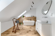 The first floor of the house consists of 3 independent bedrooms (one with a large wardrobe) and a spacious bathroom with a bathtub.