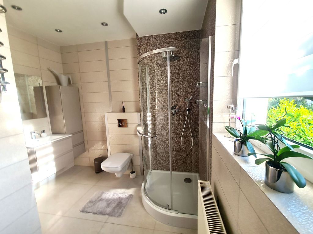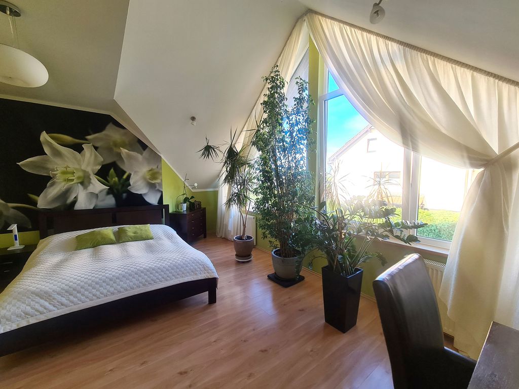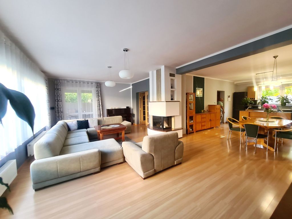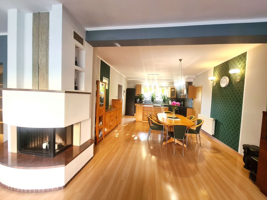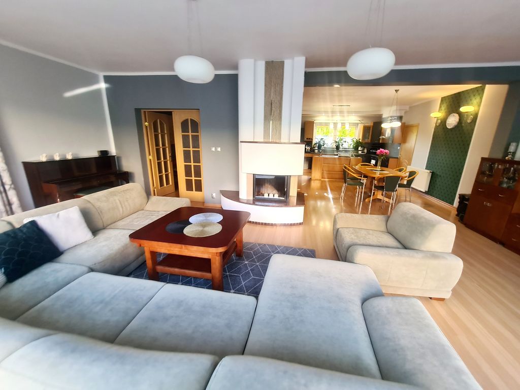 We offer for sale a comfortable and well-kept detached house with a usable area of 274.97 m2. The property was built in 2001 on a plot of 817 m2 in a quiet area of single-family houses in the Bukowo Północ district. On the ground floor there are: a large living room with a fireplace connected to the dining room and kitchen and access to the terrace and garden, a bedroom, a bathroom with a shower and a hall. On the first floor there are: a bedroom with a private bathroom and a wardrobe, two rooms, a large bathroom with a bathtub and a hall. Above the attic, the attic area is approximately 70 m2, not included in the usable area. In the garage part there is a utility room, and above the garage there is a separate apartment with a bathroom and a room in the form of an open space – with a separate entrance and a separate staircase and a separate electricity meter. Gas and fireplace heating, hot water from a gas furnace with a tank. A big advantage is photovoltaics, which produces more energy than the current demand. A large garden with beautifully landscaped greenery: fruit trees, a well-kept lawn, decorative plantings and a wooden tool house with a woodshed. In the garden, there is a square for a large, foldable swimming pool with a diameter of 6 m, which is equipped with a separate garden water meter. A single-car garage with access to the house through a side corridor and an additional carport for two cars at the back of the house with a separate entrance gate. The main gate and garage gate open automatically. Driveways and sidewalks are paved. Nearby are meadows, forests, ponds, walking and viewing areas. Quiet and nice neighborhood. I recommend and invite you to the presentation.