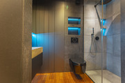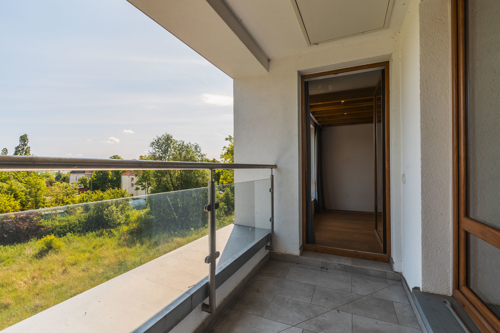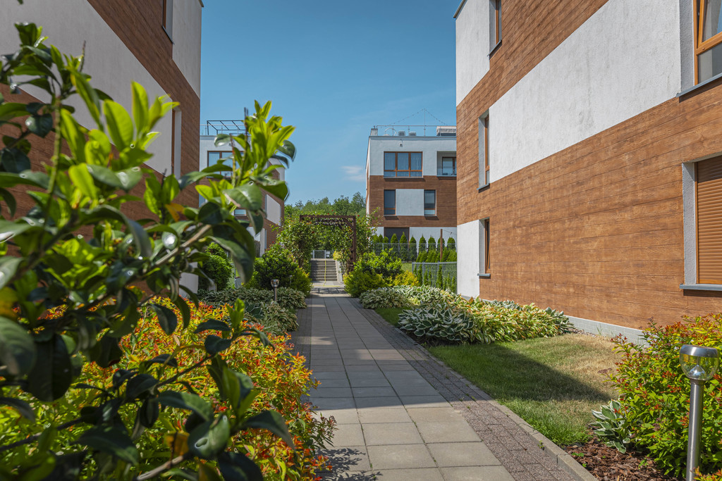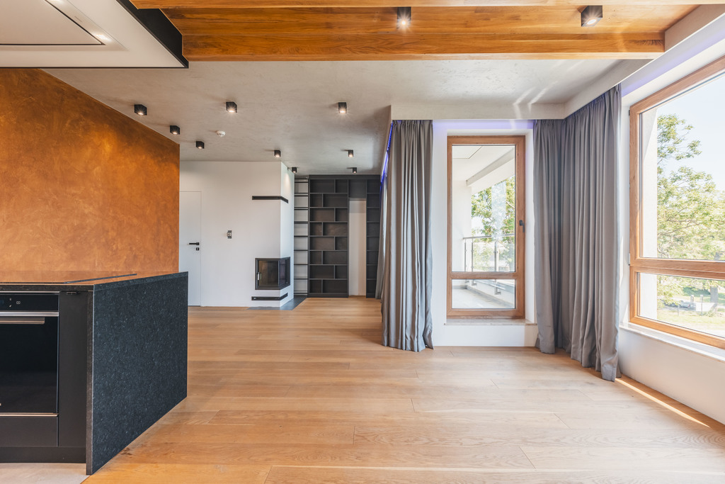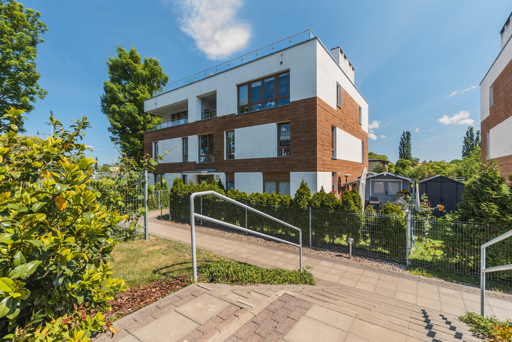 A unique, two-level apartment with a balcony, two garages and a terrace on the roof of the building for sale! The apartment is located in an intimate, fenced and monitored North Garden housing estate, in a quiet part of the Bukowo district. Each building contains only 8 apartments. The apartment has an area of 76.6 m2 and consists of 2 bedrooms, a bathroom, a corridor and a large living room with a kitchenette from which we go out to a balcony and then to a terrace of over forty meters on the roof of the building. The apartment is very modern – it is equipped with a very advanced Amio smart home system. Every light point, every socket and every electrical element is connected to the switchboard. From the application level, we can control everything in the apartment – from turning on the lights, through setting the temperature, to lowering the curtains, or extending the projector from the ceiling in the bedroom! The property is finished with the highest quality materials – oiled wood floors, oak stairs, exotic wood in the bathroom and programmable RGB lighting. All furniture and furnishings in the apartment are equipped with Blum hinges, and the household appliances in the kitchen are top-shelf. On the first floor of the apartment there is a fully functional fireplace. The apartment requires two closed, twenty-meter garages in the underground garage. Due to the garages being located at the end of the hall, we can easily park up to 4 cars (2 in the garages, 2 in front of them). Garages for PLN 150,000 in total. Please contact us EXCLUSIVELY