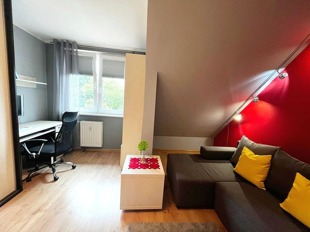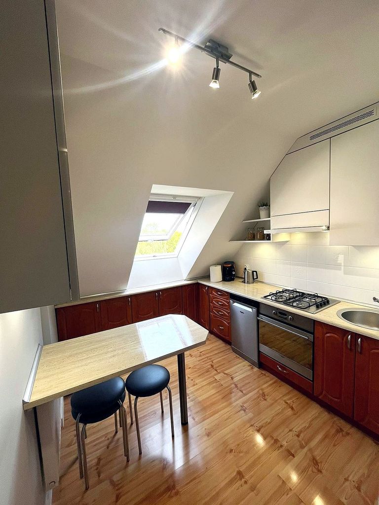 We offer for sale a nice and well-kept two-room apartment on the third floor of a three-story block from 2000. The usable area of 47 m2 (total approx. 54 m2) includes: two rooms, a bright kitchen, a bathroom and a corridor. Arranged rooms with easy-to-use slopes. The apartment is warm and ready to move in – after a thorough renovation (only a small room remains to be finished), the window joinery was replaced with energy-saving triple-glazed windows and thermal pleats were installed. Window exposure – living room and kitchen to the east and bedroom to the west. Heating and hot water from the municipal network, the rent is approximately PLN 500 per month and includes all operating fees, including advance payments for central heating, central heating, renovation fund and manager's costs. The price of the property includes kitchen furniture and household appliances (the rest is negotiable). An additional and huge ADVANTAGE is the possibility of converting the apartment into a TWO-STOREY by adapting a full-size attic with an area of approx. 40 m2, which is located directly above the apartment. We have now received a letter from the Commune specifying the conditions for the possible purchase of the attic space and its future adaptation for residential purposes. The property includes a basement and a communal drying room for use. The building is very well-kept and clean, located in a quiet area. On the first floor, where the apartment is located, there are two premises, which additionally gives a sense of greater privacy. The building's roof underwent a thorough renovation – replacement in 2021, while the staircase was completely renovated in 2023. Currently, the modernization of the block's facade is planned. There are plenty of parking spaces in front of the building. Close to school, park, commune office and shops. I recommend and invite you to the presentation !