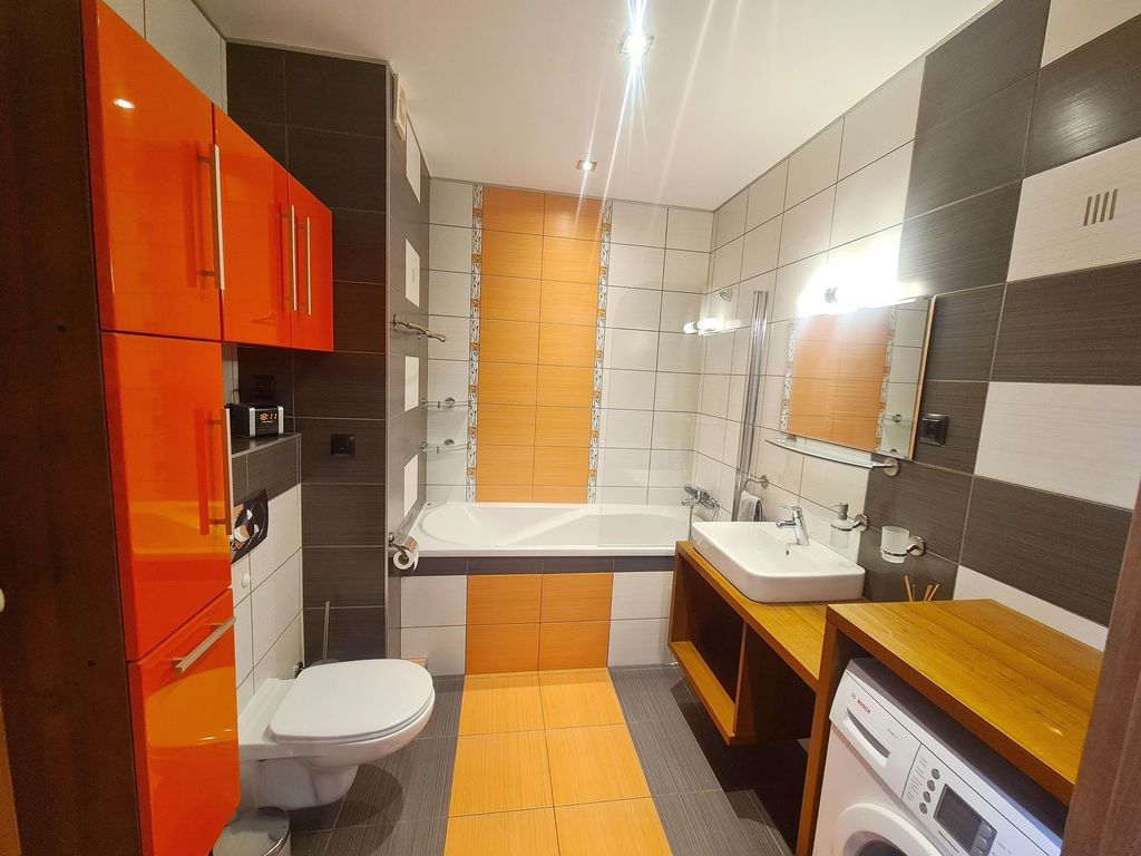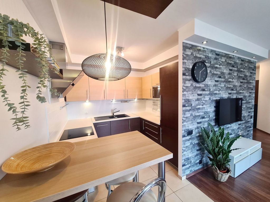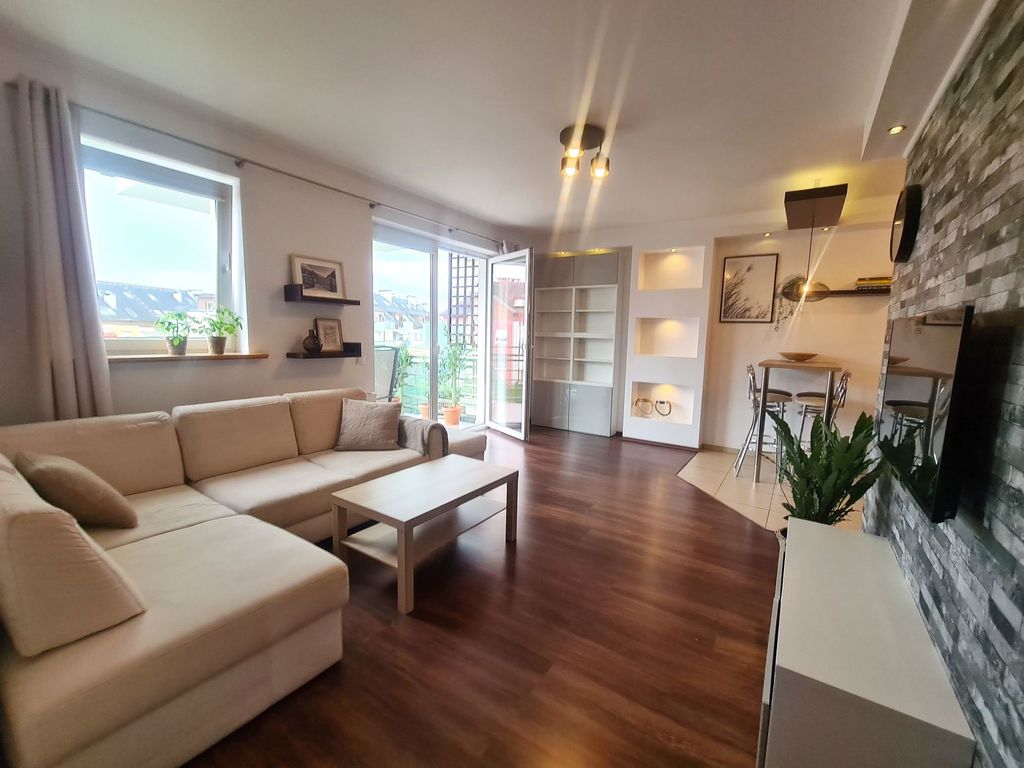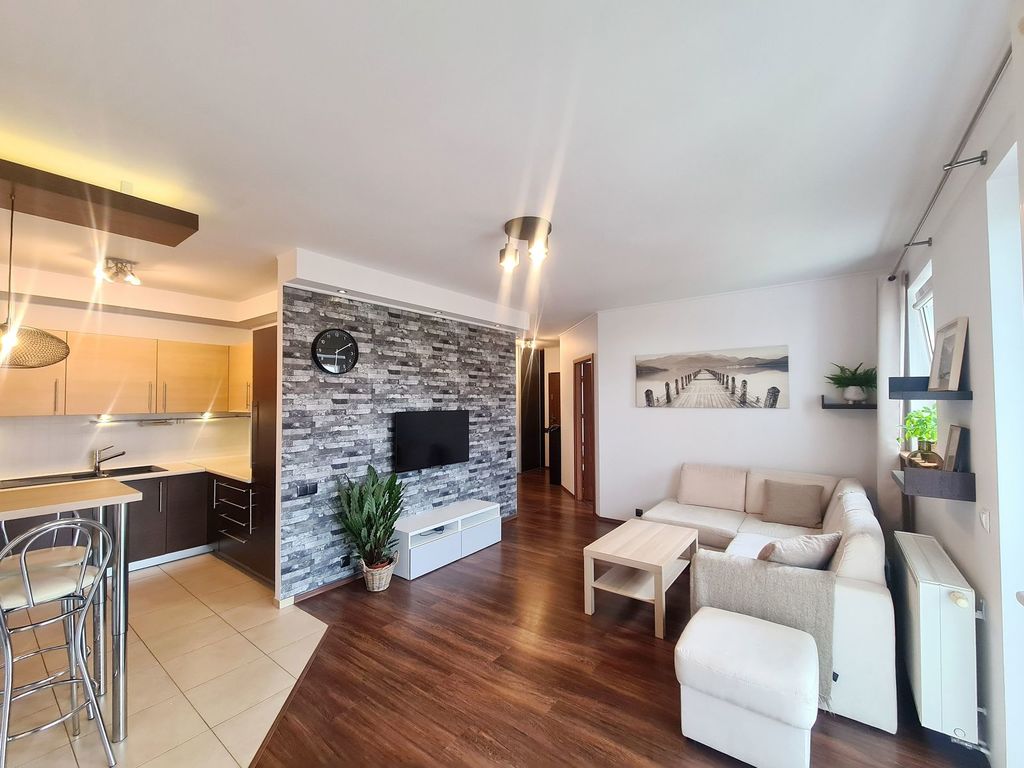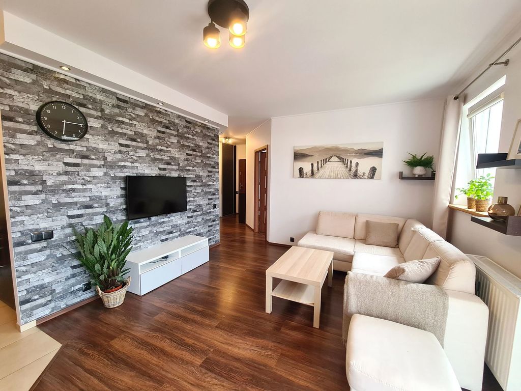 We offer for sale an attractive and well-kept two-room apartment on the second floor of a three-story block in Warzymice. The premises are located in a nicely developed, gated and guarded Różany housing estate, which gives you a sense of security. The area of 47.57 m2 includes: a spacious living room with a kitchenette and access to a large balcony, a bedroom, a bathroom with a bathtub and a hall with built-in wardrobes. The apartment has been refreshed and the bathroom fittings have been replaced – it does not require any financial outlays – fully equipped and ready to move in. The price includes all the furniture visible in the photos, as well as electronics and household appliances. The rent is approximately PLN 600 and includes advance payments for heating and hot water, garbage collection and renovation funds. Heating from a local housing estate boiler – there are returns every year. The apartment includes a basement. The block was built in 2007 from silicate, and three years ago the roof, gutters and balconies were refreshed. The estate is characterized by low-rise buildings with plenty of greenery and parking spaces. Nearby there are grocery stores, service and catering outlets, as well as a primary school in Przecław, a public transport stop and the GOKSiR community center. Thanks to the newly opened bypass, the traffic intensity in the area has decreased, which will facilitate the use of recreational infrastructure – many walking and cycling routes. I recommend and invite you to the presentation.
