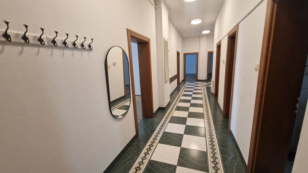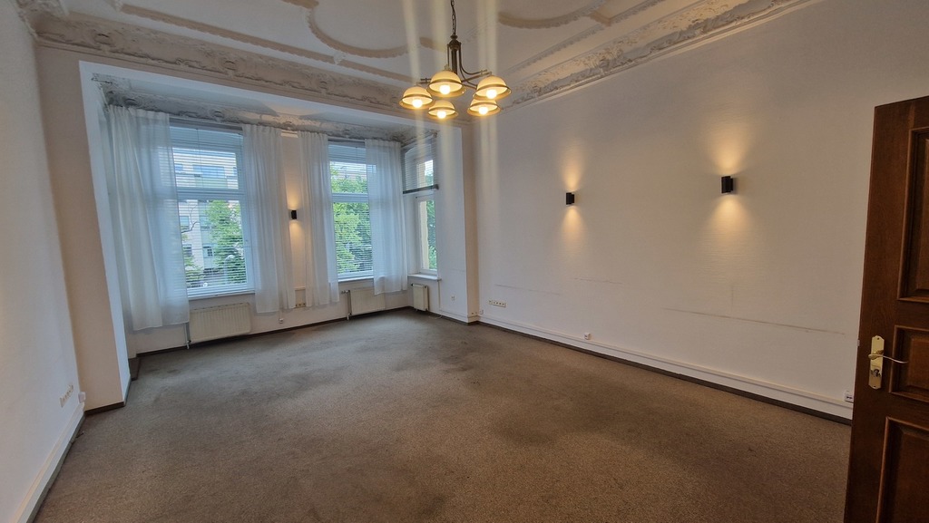A premises for rent with an area of 214.82 m2, located on the 1st floor of a tenement house at ul. Piastów (at Plac Szarech Szeregów). Great location with access to public transport (buses and trams). The premises consist of large, sunny and very spacious rooms with areas of 27 m2, 39 m2, 40 m2, 41 m2, 15 m2 and 13 m2. All rooms are connected by a corridor – there are no connecting rooms. An additional advantage is the fact that two rooms of 40 and 41 m2 each have wide sliding doors between them – when opened, an open-space area of 80 m2 is obtained. Additionally, there is a kitchen (8.5 m2), a toilet and a small bathroom. Computer and telecommunications installations distributed throughout the rooms, plus an alarm system. The premises have Orange optical fiber and UPC via cable. Heating in the premises with a dual-function gas furnace. Additional fees payable by the tenant include rent to the community of PLN 755 with renovation fund, gas, electricity and real estate tax. The price is a net price. Deposit PLN 10,000. Available immediately. We invite and recommend.