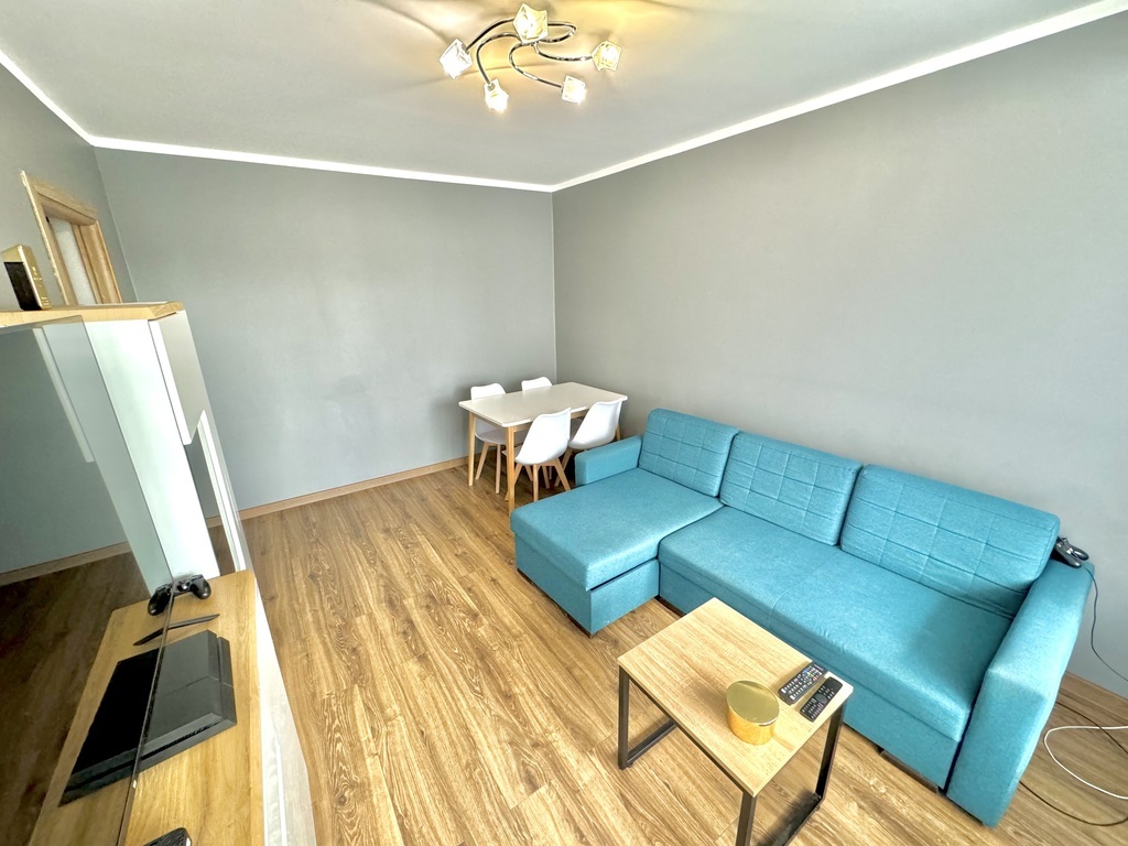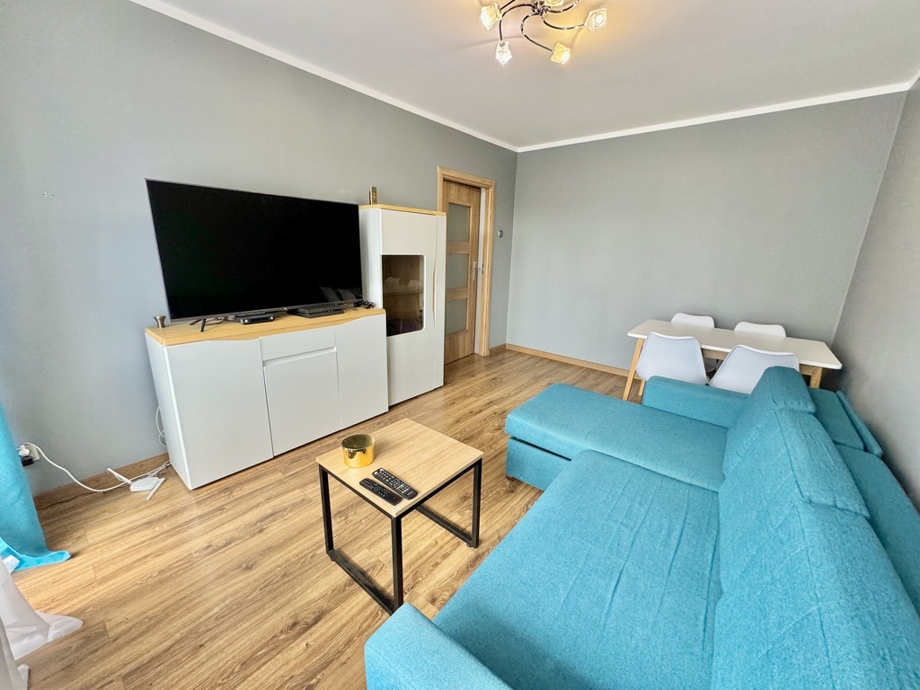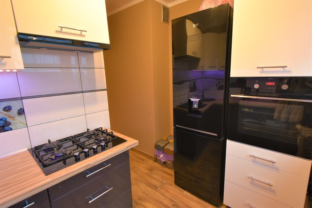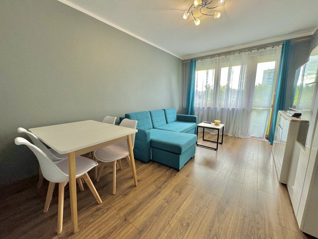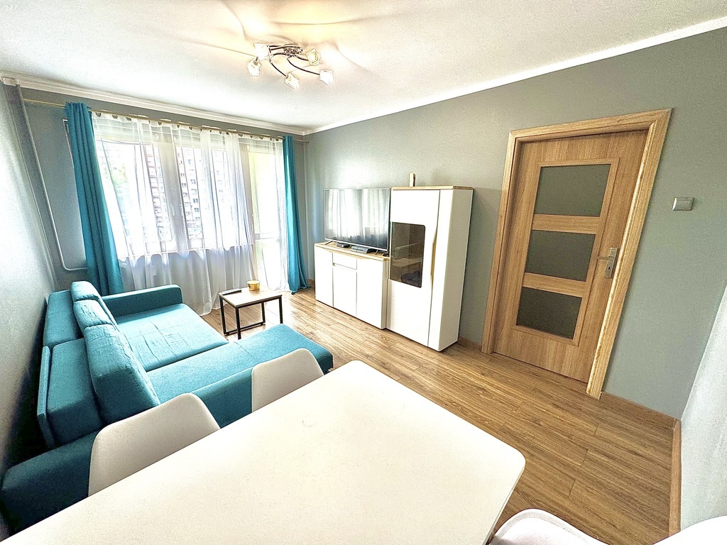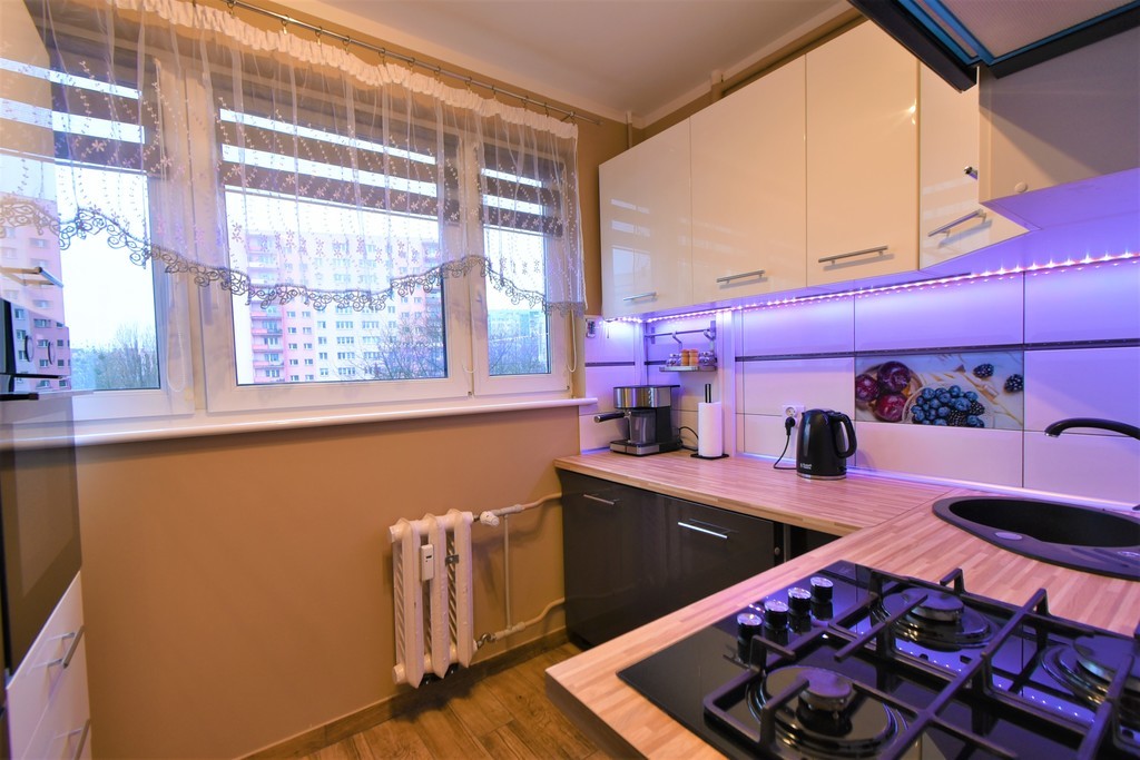 For sale: a two-room, warm apartment with an area of approx. 45 m2, located on the third floor. An eight-story building with an elevator, built in 1970, insulated. The property consists of the following rooms: – living room with access to the balcony, – bedroom, – separate kitchen with furniture and household appliances (fridge, oven, dishwasher, hood, gas hob), – bathroom with bathtub and shower, – toilets, – corridor with a built-in wardrobe, additional storage space in the wall. The price of the property includes a wardrobe in the bedroom and permanent furniture along with kitchen furniture and household appliances. The apartment was renovated (8 and 6 years ago), during which the electrical and plumbing installations were replaced, the walls were smoothed and painted, windows, interior doors and floors were replaced. The water pipes in the bathroom were replaced by the cooperatives. PVC windows (three-pane in rooms) with day-night blinds. Municipal heating and water. The average monthly rent is approximately PLN 700. The property also includes a basement. Very good location, close to everything: public transport, service and commercial points, schools, kindergartens, clinics and other public utility points. I would highly recommend!