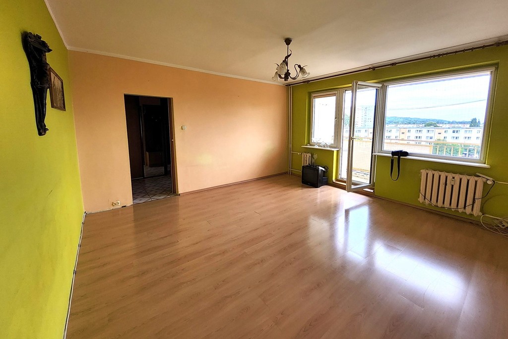 Apartment for sale, located on the 5th floor of a skyscraper. On an area of approximately 48 m2 there are: a living room with an area of: 22 m2 with access to a large balcony, bedroom with an area of: approx. 9 m2, spacious hall in a square with an area of approx. 6 m2 with built-in wardrobe, kitchen equipped with furniture and separate bathroom and toilet. Painted walls, panels and terracotta on the floor. PVC windows. Heating and hot water from the municipal network. Currently, the rent is approximately PLN 1,100 (however, there are very large advance payments and fees for water and garbage due to the fact that several employees lived here, which resulted in significant water consumption). Additionally, only electricity is charged. The apartment includes a basement. There are 2 elevators in the block. Osiedle Słoneczne has a well-developed infrastructure. Close to public transport, schools, kindergartens, clinics, shops, bicycle paths. There is a large parking lot nearby. The balcony offers a beautiful view of the Beech Forest and is a great place for walks. The apartment is perfect for living but also as an investment for rent. I recommend and invite you to the presentation.