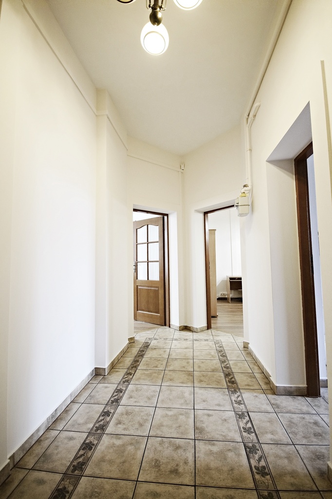 Office space on the 1st floor consisting of 5 rooms in the center of Szczecin at ul. Jagiellońska – hello at the newly renovated al. Polish army. The restaurant has its own shop window at the entrance to the staircase. The premises is suitable for running a business, e.g. an accounting office, notary's office, doctor's offices, etc. There are numerous parking spaces around the building. Exposure of south-east and west windows. The staircase and the front of the facade after renovation. Very good accessibility to shops and public transport. Lots of green around the building. * The total area of the premises is 82.3 m2 * The premises consists of 5 rooms: – Corridor with an area of 7.45 m2, smooth painted walls, terracotta on the floor. – Bathrooms of the area 2.65 m2, equipped with a shower cabin, a sink, all in glaze and terracotta. – WC of the area 1.70 m2, all glazed and terracotta – Kitchen – social room with an area of 10.35 m2, equipped with kitchen and office furniture, fridge, sink, table, smoothed, painted walls. – The first office room from the street with an area of 23.56 m2, equipped with a desk, table and other office furniture, including separate rooms for documentation and server rooms. – A second office room with an area of 26.14 m2, equipped with a large office table for several workstations and other office furniture, smooth painted walls, panels on the floor. – The third office room with an area of 10.65 m2, for your own arrangement, smooth painted walls, panels on the floor. – The staircase and the façade have been renovated – There are new water and sewage pipes and a new electrical installation in the premises. – Alarm system and Internet network in each of the office rooms. – Rent to the manager PLN 245 per month, including the repair fund. – Heating the premises with a gas stove. I invite you to the presentation.