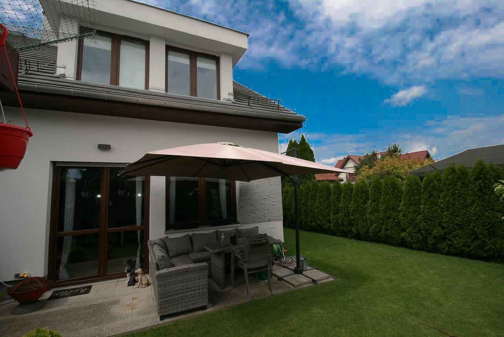 Semi-detached house (built in 2017) located in a quiet and peaceful part of the Krzekowo / Bezrzecze estate. There are shops and public transport in close proximity. The area of the house is 121 m2, the plot – 216 m2. The property is finished to a high standard. All furniture and equipment visible in the photos may remain included in the price. 1st level: – spacious, sunny living room with a fireplace and access to the terrace and further to the garden, – bright kitchen with built-in furniture and equipment, – entrance to the garage – toilet from the kitchen, – hall 2nd level: – two bedrooms – children's room – bathroom with toilet, shower and bathtub, – utility room with a washing machine and a dual-function gas stove providing heating and hot water, – entrance to the attic with a window – currently serves as a utility room. On the first floor and in the bathroom there are heated floors and windows with anti-burglary blinds. Triple-glazed PVC windows. Air conditioning on level I and II. A landscaped garden with numerous plantings. A self-watering system and a self-cutting lawn mower are installed. There is also a sauna room in the garden. In front of the entrance to the house there is a parking space, a garage with a remote-controlled gate and a carport. The house is located in a very quiet and friendly area. There is silence around and birds singing in spring. Czerwona Torebka, Netto and Lidl are nearby. Distance to public transport – approx. 300 meters, 3 bus lines. The Klonowica tram and bus depot is nearby, with very good access to the city center. For families with children, there is Misia Wojtek Square, with a friendly atmosphere for playing, an attractive playground, a cafe, a hairdresser, and a garden center. Lots of places for walks and bicycle routes. I highly recommend and invite you to the presentation.