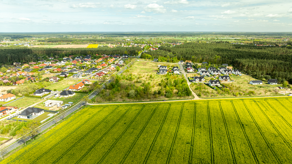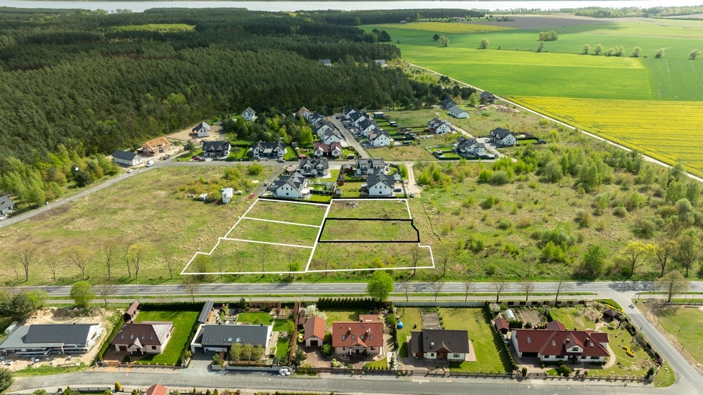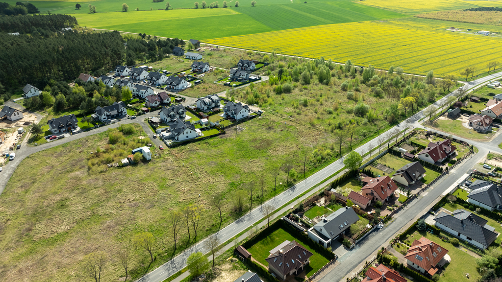 Kobylanka, Makowe estate. Easy access to Szczecin and Stargard. Plot for quick development with an area of 969 m2 in the shape of a regular rectangle. Access to the property is via an asphalt road and then an internal, paved road adjacent to the plot. Design work on hardening and laying asphalt in the road plot is in progress. A decision on development conditions has been issued for the plot. Lake Miedwie is nearby. Only a few minutes walk. A "Decision on development conditions" was issued for the neighboring plot: * Plot intended use: single-family residential development. * Building area up to 25% of the plot area * Width of the front facade 13 -20 meters * Building height up to two storeys – 3.2 – 3.8 meters from ground level to the lower edge of the eaves of the main roof – 7.5 – 9.0 meters from ground level to the ridge * Gable or multi-slope roof with a ridge with an inclination angle of 30-45° Utilities: – municipal water in the adjacent access road, along the border of the plot, – electricity in the adjacent road, ZK box on the border of the plot, – gas in the adjacent road , along the border of the plot, – sewage system in the adjacent road, along the border of the plot. Soil valuation class RIVa and RIVb. The plot is surrounded by single-family and two-family houses. Starting price PLN 336,000. More plots for sale located in the same area. I invite you to the presentations.