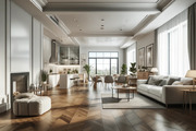 A detached house for rent in the forest buffer zone, in a guarded housing estate, located just 10 minutes from the center of Kołobrzeg. The property is located in a quiet and peaceful area, and due to the open space around, the interior is extremely bright.