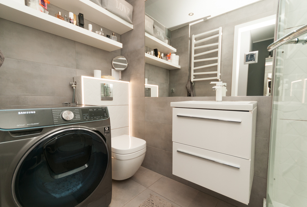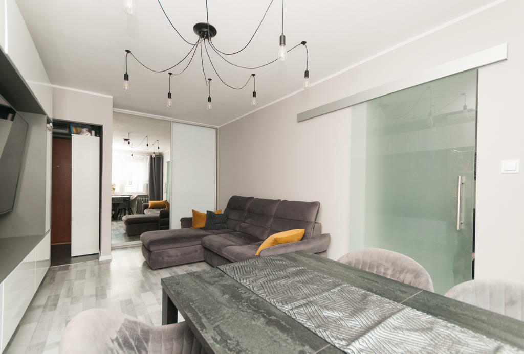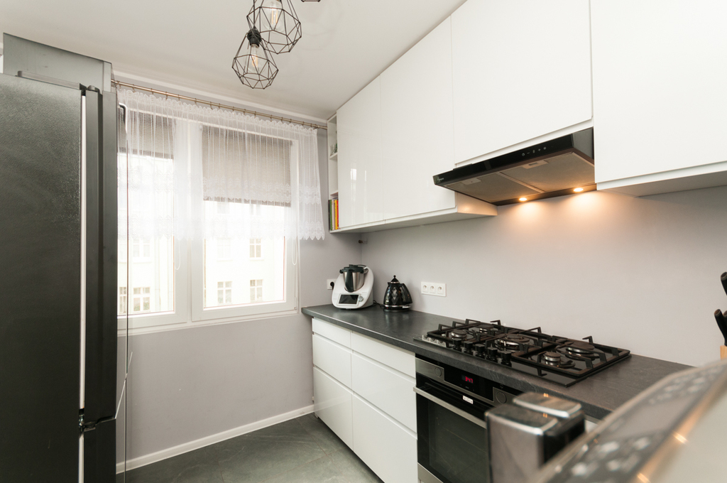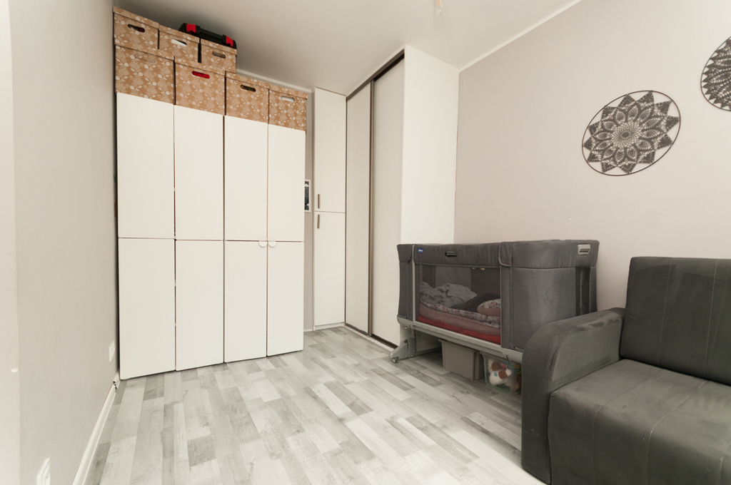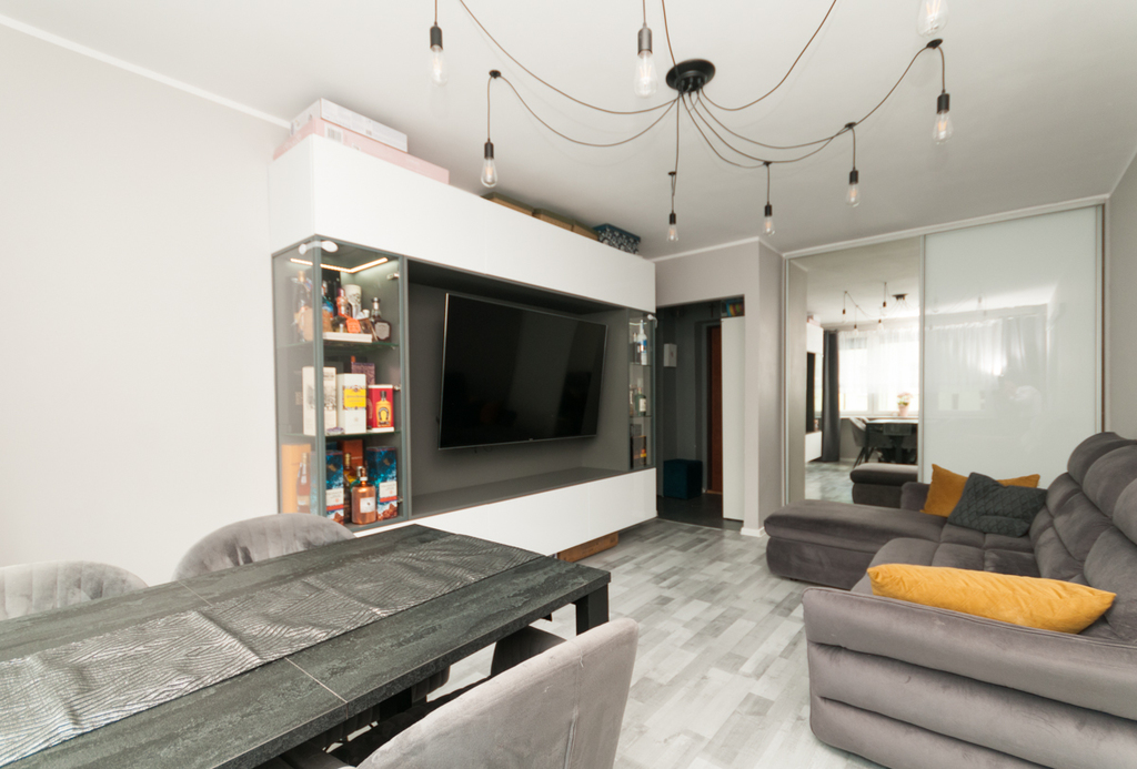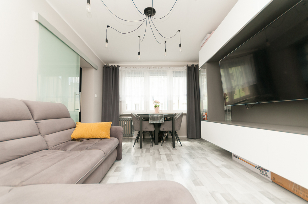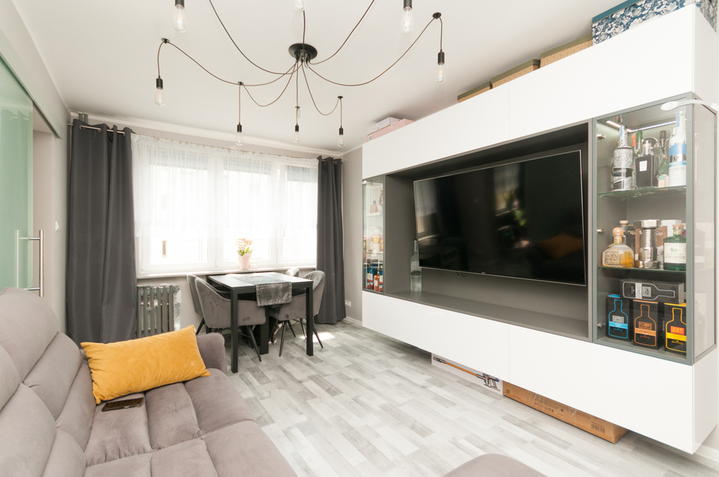 The apartment underwent a general renovation a few years ago – the electrical installation was replaced (including power supply to the kitchen to be able to install an induction hob in the future), water and sewage systems in the apartment, and new triple-glazed PVC windows were installed. The walls in the apartment are smoothed and painted.