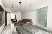 The living room is the main part of the apartment, from where you enter a smaller room through a sliding glass door, which can be a bedroom or a child’s room.