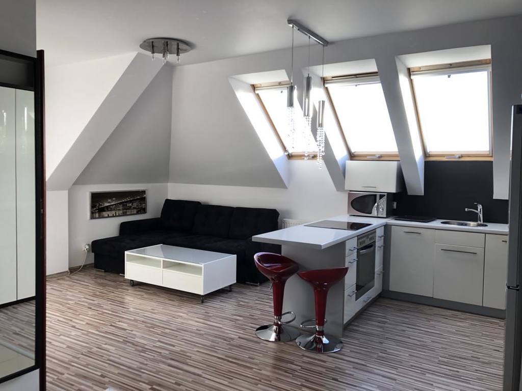 The offer for sale is an apartment located in the Tęczowe Ogrody Housing Estate. Apartment with an area of 32 m2 consists of: – living room connected to the kitchen – bathroom with toilet – attic serving as a bedroom. From the living room there is access to the balcony. There are panels on the floor, the walls are smooth and painted. Custom-built kitchen. Equipped with household appliances (ceramic hob, dishwasher, fridge, sink). Equipped with two large wardrobes. Bathroom connected to the toilet. Equipped with a bathtub, toilet, washbasin and washing machine. Bathroom with window. Partially in terracotta and glaze, and partially in painted plaster. The apartment is located on the eastern and southern sides. The apartment includes a basement. The apartment is very bright and sunny. Rent to the manager in the amount of PLN 400 with advance payments for hot and cold water, heating, renovation fund, and maintenance of common areas. Additionally paid electricity. The apartment is located in a green, gated housing estate, entrance to the housing estate is through a barrier. The entire area is fenced. There is a playground, playground, benches and public parking spaces in the estate. There are green and recreational areas around, walking and cycling paths. There is a bus stop next to the estate. Nearby shops: Lidl, Biedronka, Rondo Hakena.