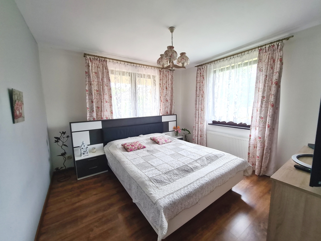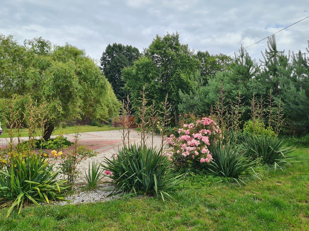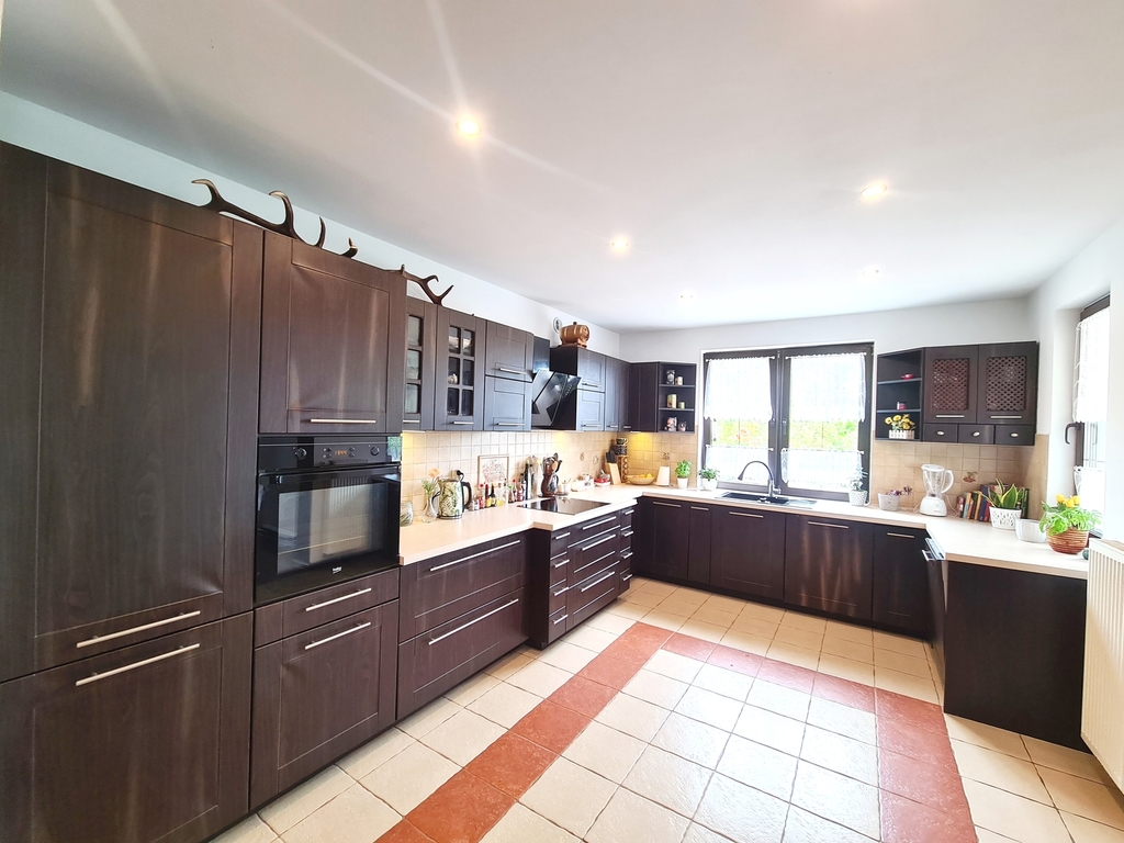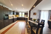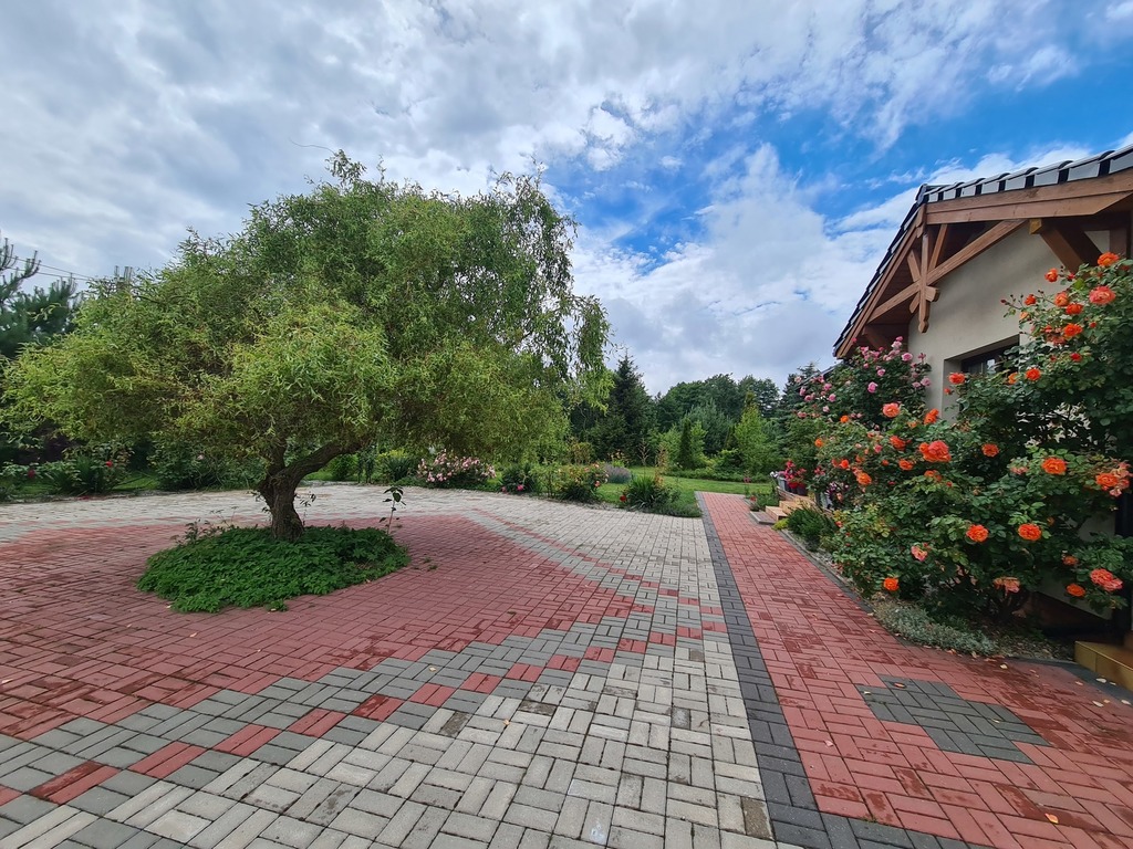 We offer for sale a very charming and spacious single-story house located in a quiet area of Witorz – between Tanów and Police. The property was built in 2018 on a plot of 7,000 m2. The usable area of 124 m2 (total 142.20 m2) includes: – kitchen with dining room and living room and access to two terraces – bathroom with bathtub, shower and toilet – bedroom – room with its own bathroom with shower and toilet – office room – toilet – hall with built-in wardrobes – hall – two utility rooms. Garage in the building for one car. A second detached garage in the yard with a shed. The price of the house includes permanent furniture and household appliances, the rest of the furniture is negotiable. The house is very well-kept and ready to move in. Solid fuel heating. it is possible to make a fireplace in the living room. The plot is beautifully landscaped with trees, flowers and rockeries. A huge fenced area with access to the river and a place for a bonfire. An ideal place for people who value peace, closeness to nature and intimacy. I cordially invite you to the presentation. Maybe this is your dream place.