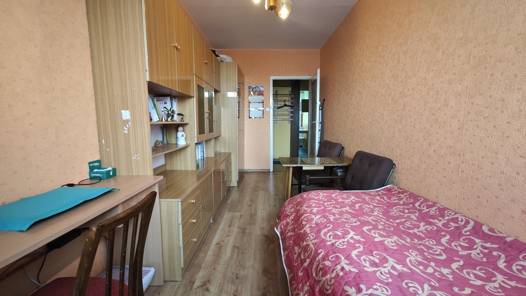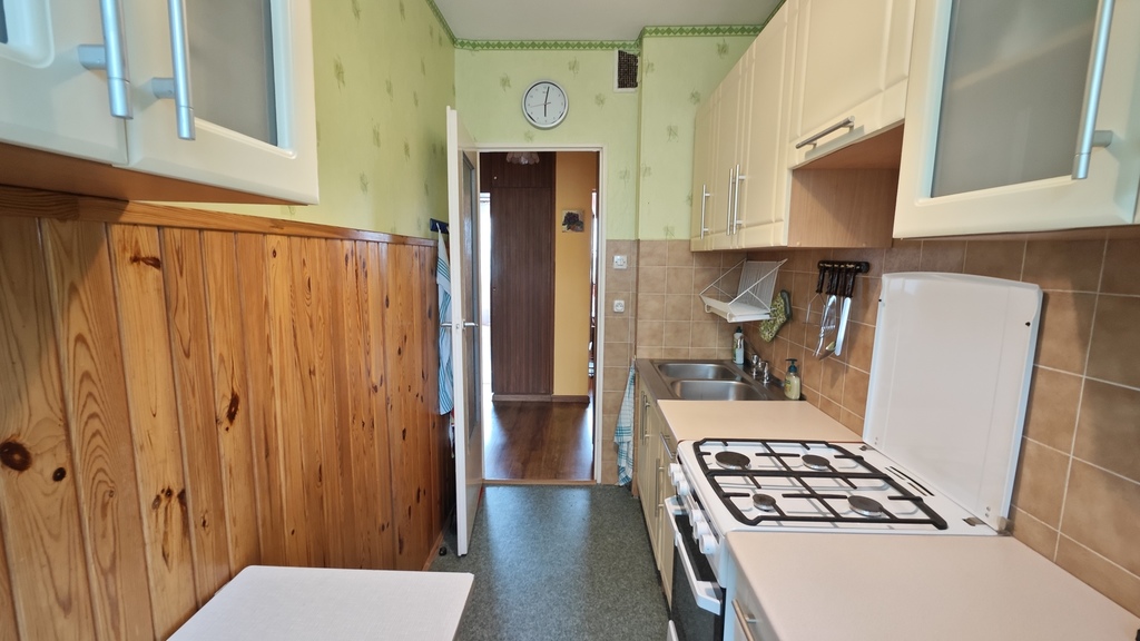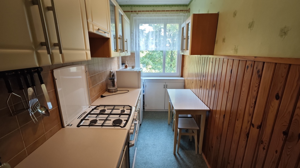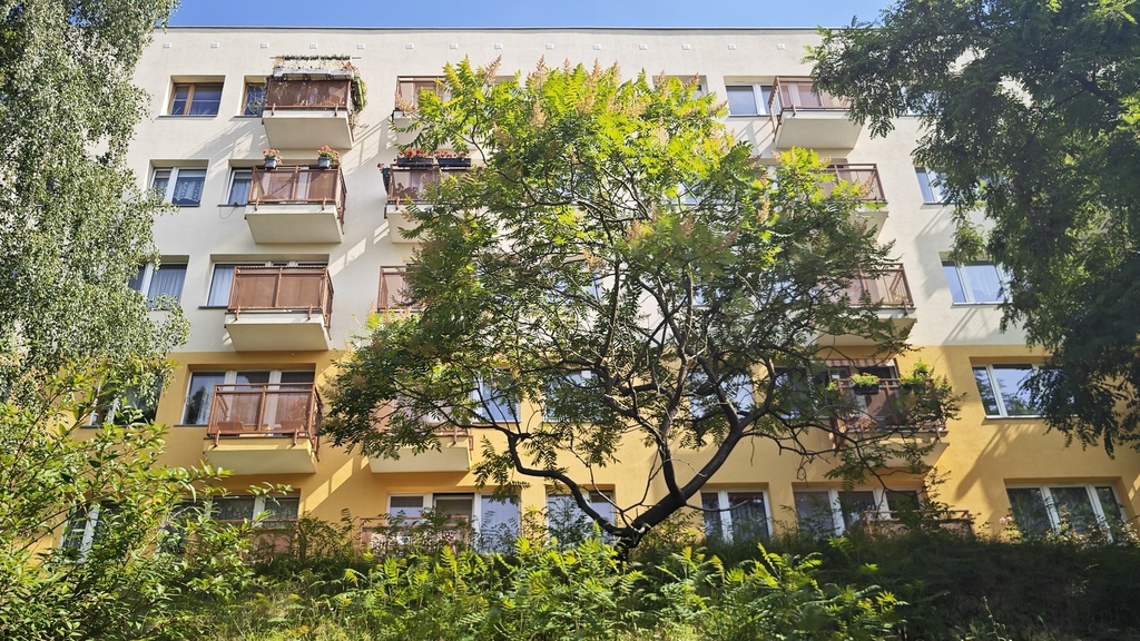 We offer for sale a planned, three-room apartment with an area of 53.18 m2, located on the third floor in a low building in the Arkońskie Housing Estate. The location is the greatest advantage of the offered property. The apartment is located at the very end of Zakole Street, in the highest building, on a slope. The windows offer a view over the neighboring building – looking to the left at the panorama of Szczecin and looking to the right at the green areas of the "Arkonski Forest". The apartment is flexible – we enter each room from the hall. Three well-arranged rooms, a living room with access to a sunny balcony, a separate kitchen with a rectangular window, a bathroom with a toilet and a hall. The technical condition of the rooms and the hall is good (newer panels on the floor and wallpapers on the walls), while the kitchen and bathroom require renovation (older tiles in the bathroom). All furniture can remain in the apartment. All windows replaced with PVC plus internal blinds on rails. The living room and one of the bedrooms are on the south-west side (sun from 11.00 until sunset, which we can watch from the balcony). The second bedroom and kitchen are on the north-west side. Anti-burglary external doors from LaBRAdoor. Heating and hot water – municipal. Rent to the housing cooperative in the amount of PLN 550 (including advance payments for heating and renovation funds). The apartment has an Orange multimedia installation (fiber optic). The apartment includes a basement. Additionally, there is a stroller/bicycle room in the cage where you can easily store a stroller or a bicycle. Very comfortable staircase (gentle and wide stairs), only ten apartments in the entire staircase (two on each floor). There are plenty of green areas in the estate, numerous parking lots and playgrounds. In the immediate vicinity of the estate there are numerous shops, a pharmacy and public transport stops (a few minutes to the final stop of bus line "B"). Very close to the "Arkonian Forest" (with numerous hiking trails and bicycle paths) and to "Szczecińska Gubałówka" with a charming ice rink that is bustling with life in winter. An offer worth recommending due to the fantastic location of the property!!!