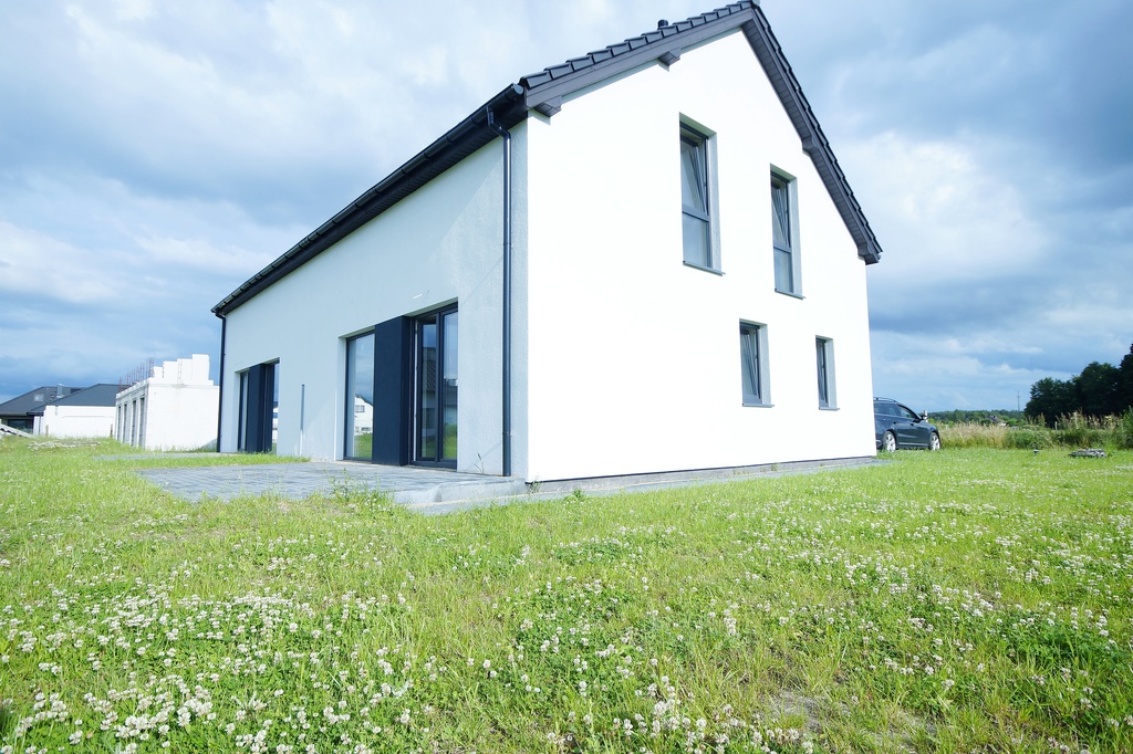 I am selling a semi-detached house in developer standard with a usable area of 92.13 m2 and a plot of 650 m2. The location of the property is very charming, with single-family houses nearby. There are shops, schools and bus stops in the area. * Total area 134.24 m2 * Usable area 92.13 m2 The house consists of 5 rooms, 4 bedrooms, 2 bathrooms one on the ground floor, the other on the first floor, a sunny living room with a dining room and a kitchen, from the living room there is access to the garden. On the ground floor there is: – Living room with dining room + Kitchen 29.34 m2 – Office 8.21 m2 – Bathroom – WC 3.58 m2 – Corridor 4.40 m2 – Vestibule 2.69 m2 ——— ————————————- Total – 48.22 m2 On the first floor we have: – Room – Bedroom 11.24 m2 – Room – Bedroom 9.47 m2 – Room – Bedroom 8.67 m2 – Bathroom 6.53 m2 – Hall 4.10 m2 – Stairs 3.90 m2 ———– ———————————– Total 43.91 m2 The price does not include VAT at the rate of 8% . Purchase without PCC tax. I recommend it due to the location and price. I cordially invite you to the presentation.
