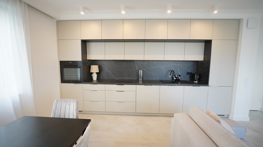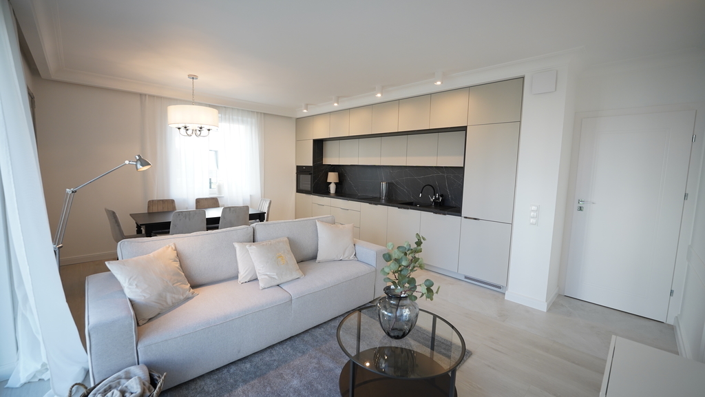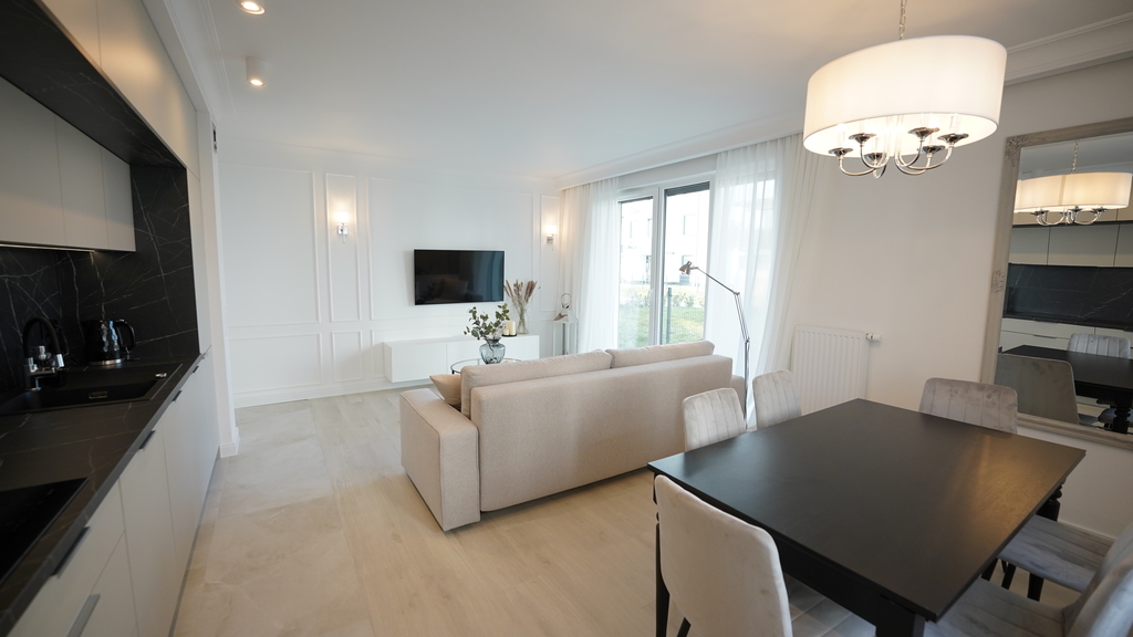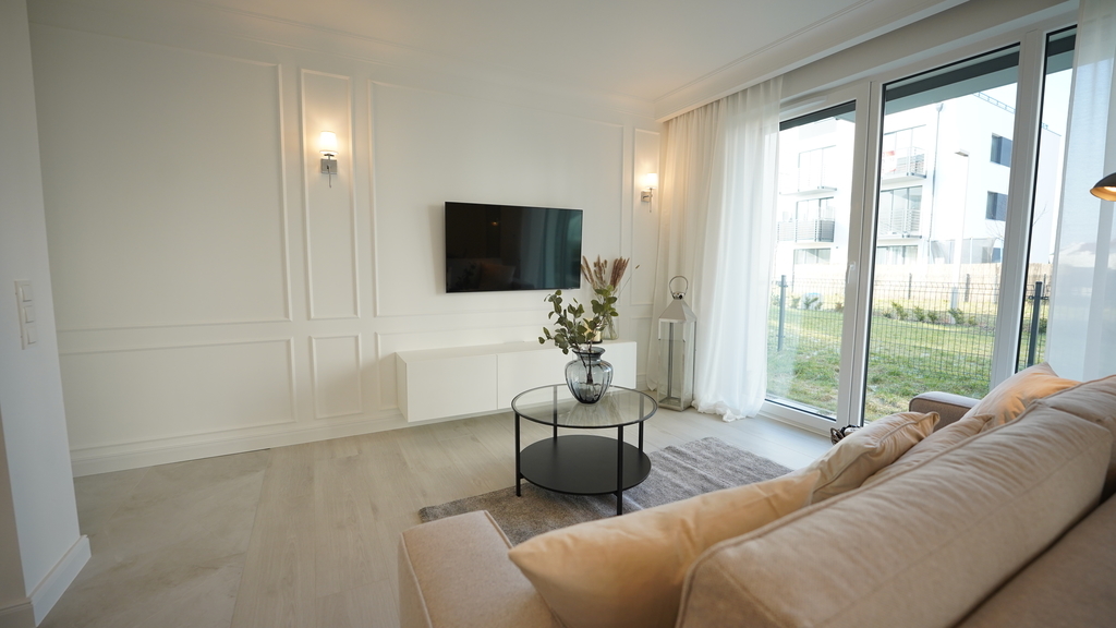 A 3-room apartment with a garden of 59 m2 for sale on the ground floor of a low-rise apartment building "Nowe Warzymice", an ideal location for people who value peace from the hustle and bustle of the city while being close to it. A beautifully lit and spacious apartment whose area consists of: – living room with kitchen: 26 m2 – room: 8.9 m2 – bathroom: 4 m2 – bedroom: 12.7 m2 – corridor: 5.8 m2 – utility room: 1.6 m2 Kitchen equipped with appliances Household appliances (oven, hob, dishwasher, fridge), sofa with sleeping function. The bedroom has a 160 cm bed and two spacious wardrobes. Bathroom with bathtub and toilet, washing machine. Corridor with a built-in wardrobe. Perfect location, close to shops, kindergartens, gym, university and quick access to the City Center. Additionally, a parking space in the estate of 15,000. (obligatory purchase) EXCLUSIVE I invite you to the presentation