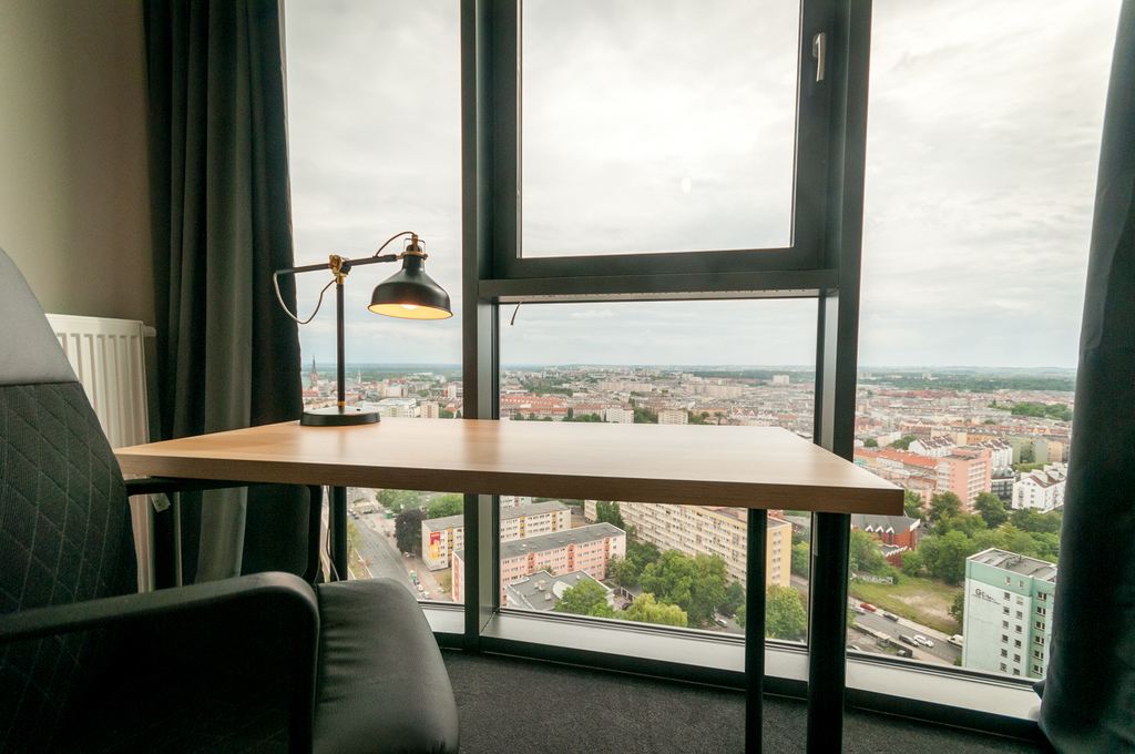A comfortable 3-room apartment for rent in the tallest apartment building in central Szczecin. The windows offer beautiful panoramic views of the city, with windows facing south and southwest. The building features a viewing terrace on the 27th floor, accessible to residents. Tenants also have access to a swimming pool, which is available for unlimited use from 6:00 a.m. to 10:00 p.m. The price also includes a parking space in the underground garage on level -2.