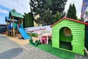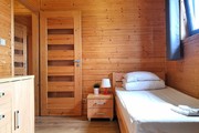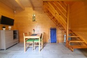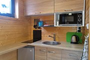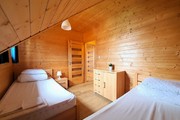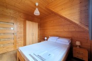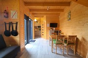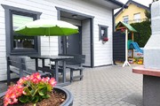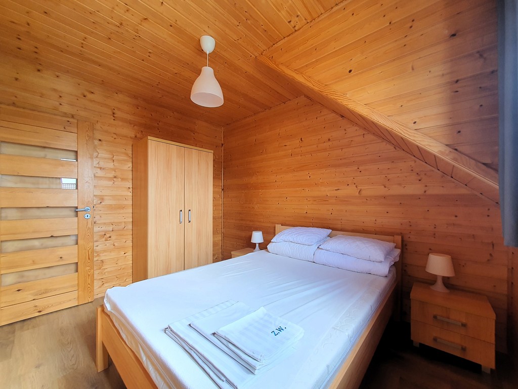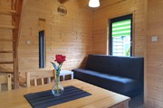 The building is divided into 4 parts, each of which consists of a living room with a kitchenette and a bathroom (ground floor) and two bedrooms (first floor). Each module can accommodate 6 people comfortably, and for their exclusive use there is a picnic table and a concrete grill outside. Additionally, there is a children’s play corner and bicycles on the property.