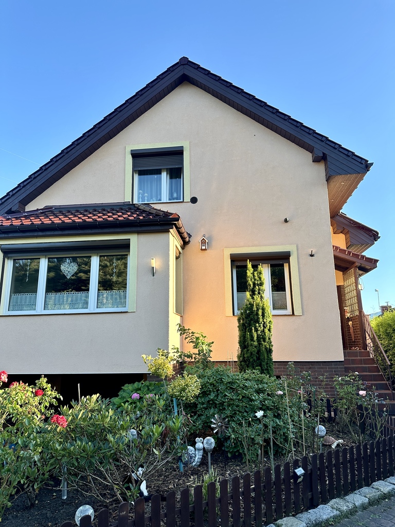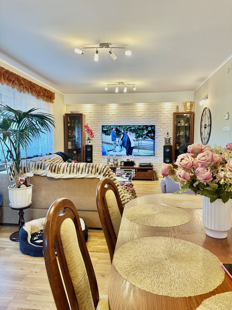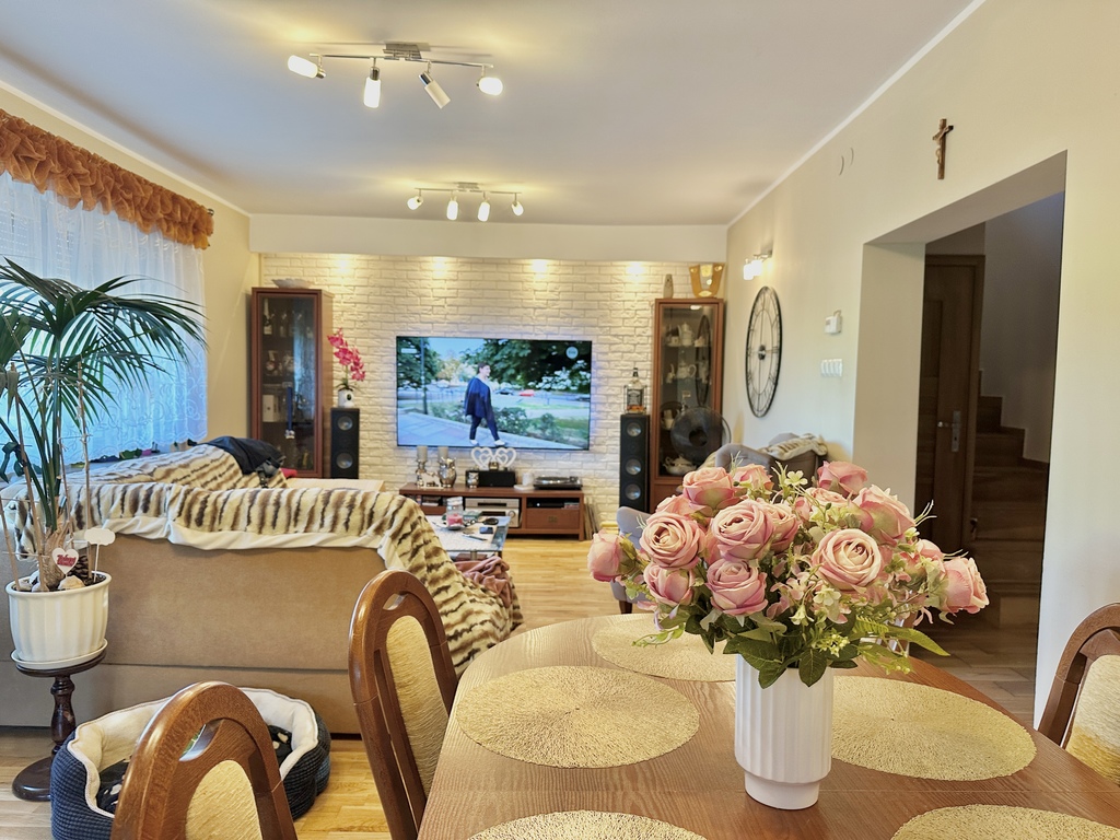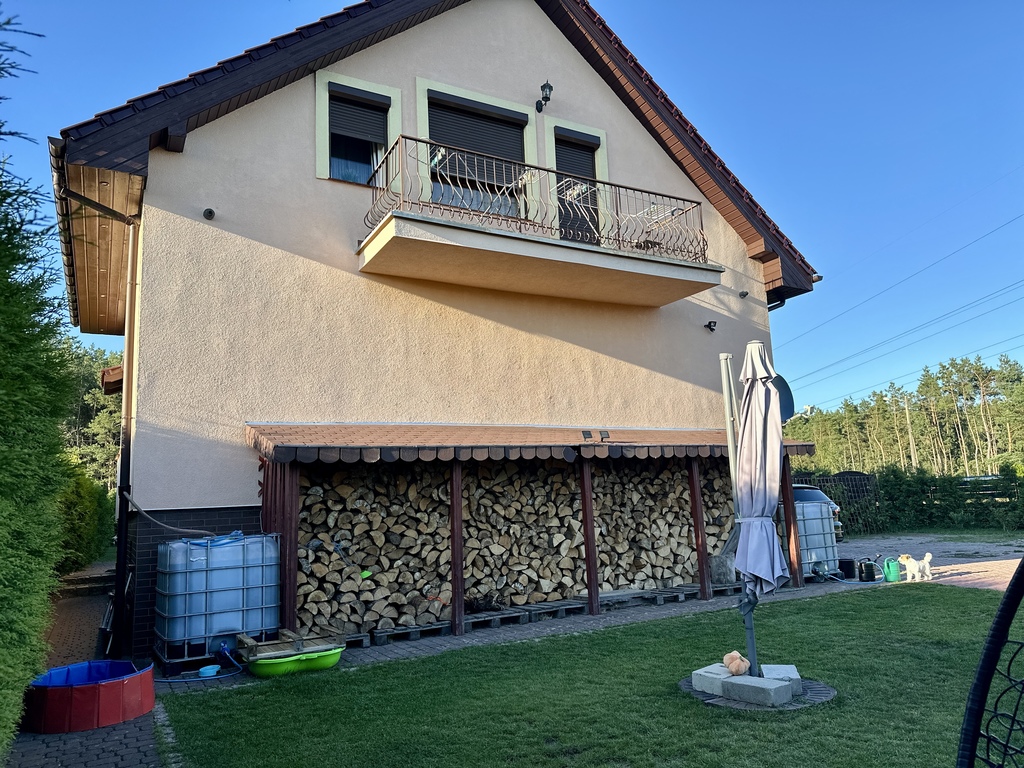 Energy-efficient house with a well-kept plot!! For sale a house in Wołczków with an area of 190m2, usable area of 130m2 situated on a plot of 1186 m2. The property is ideal for a family that values comfort and space. Ground floor: – Vestibule with an area of approx. 3m2, – Hallway with an area of approx. 4m2, – Bathroom with an area of approx. 7 m2, – Room with an area of approx. 7 m2, which can act as a study or guest bedroom, – Spacious kitchen with an area of approx. 10 m2, fully equipped with household appliances, including an induction hob, – Living room with dining room with an area of 28 m2, an ideal place to spend time together with family and friends. First floor: – Bedroom with wardrobe, approx. 22 m2, providing comfort and plenty of storage space, – Room with balcony and built-in wardrobe, approx. 16 m2, – Additional room approx. 6 m2, – Bathroom with shower and bathtub and window, approx. 7 m2. The house underwent a general renovation in 2001, and the roof was replaced with ceramic tiles in 2011. The brick walls are double-layered, with 10 cm of polystyrene insulation on the outside and an additional 5 cm of polystyrene between the layers. A paving stone was laid on the outside of the property. Five years ago, the house underwent an internal renovation, which included replacing all central heating and hot water installations with copper ones, which ensures durability and reliability. The house is equipped with a water filter and softener, which improves the quality of utility water. Gas heating from a two-circuit furnace, and there is also a separate wood stove. Photovoltaic installations are currently being installed, which will further increase the energy efficiency of the property. Water is supplied from the municipal network, and the sewage system is also municipal. The floor on the first floor is lined with panels, while on the ground floor various materials were used: in the living room and a small room on the ground floor there is a Barlinek board, and the rest of the house is terracotta. The house has anti-burglary roller blinds on the windows throughout the building and a monitoring system consisting of six cameras and a recorder, which ensures the safety of the residents. The stairs leading to the first floor are covered with terracotta with a wood look, made of poured concrete, which ensures durability and an aesthetic appearance. The windows throughout the house are plastic, double-glazed, providing good thermal insulation. The kitchenette has triple-glazed windows from M&S from Słupsk. The house is surrounded by a large garden with arborvitaes and fruit trees, which provides privacy and the opportunity to relax in the fresh air. The plot of 1186 square meters offers many development possibilities, including a place for a children's playground, a vegetable garden or a recreational space. The property is very well-kept and clean, located in a quiet area, with convenient access to urban infrastructure. Nearby there are schools, shops and public transport stops. This is an ideal place for people looking for peace and comfort of life close to nature. I cordially invite you to the presentation