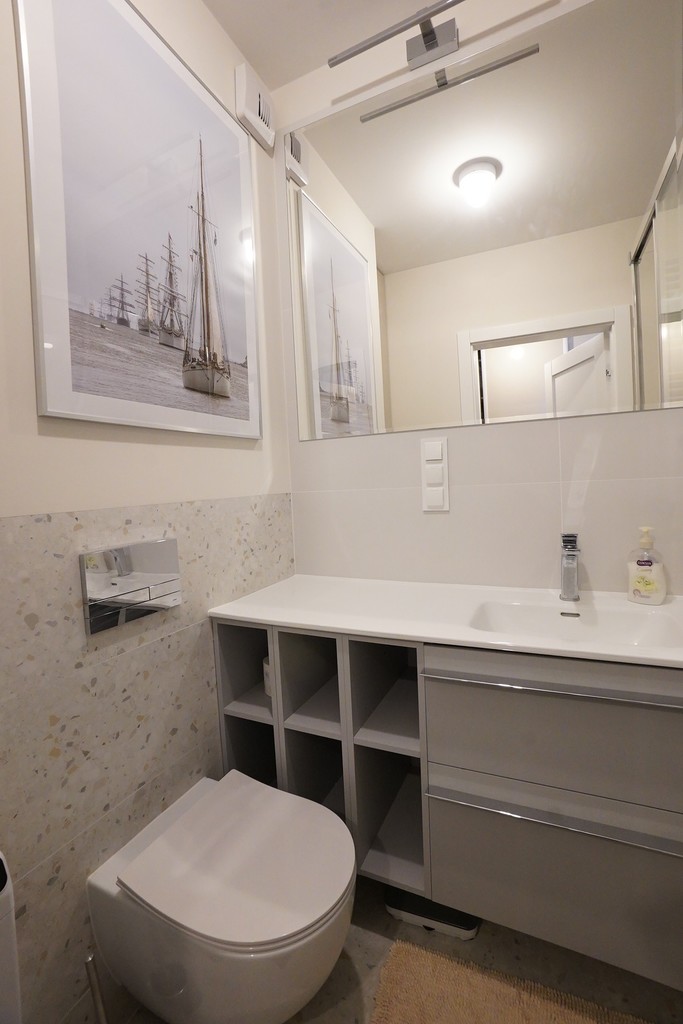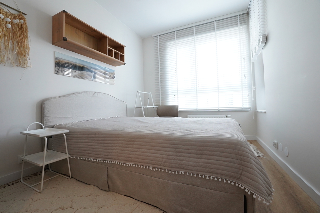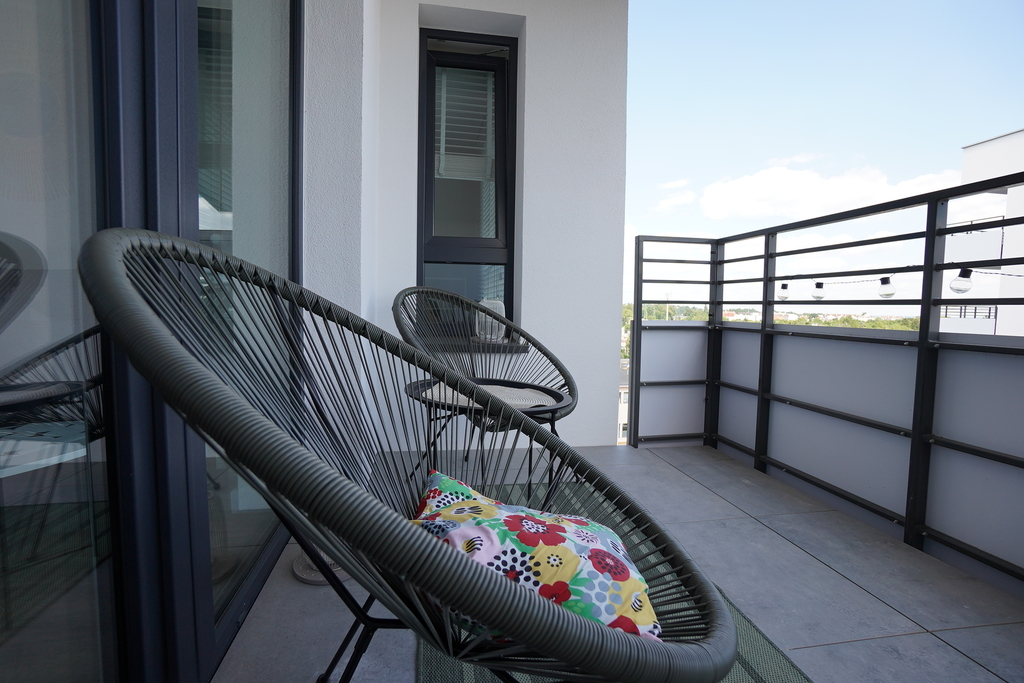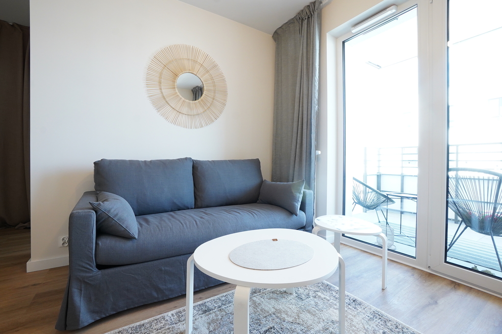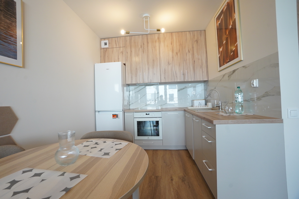 An apartment for rent in a recently built block, furnished in a modern style. An apartment with an area of 39.65 m2 consisting of a living room with a kitchenette, a bedroom, a bathroom, a hall and a balcony, and two parking spaces in the underground garage – PLN 300 per space. The apartment is well-kept, furnished and equipped with the most necessary things. The apartment is located on the fourth floor, the building has an elevator. Quick access to the center by public transport.