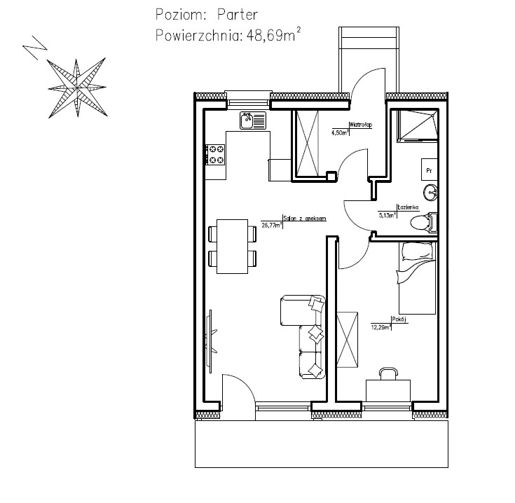 Two-room apartment with a large balcony for sale in a newly built block of flats at Starogrodzka Street in Drawsko Pomorskie. Located in a low, three-story building with a silent elevator and an underground garage. Apartment in developer's standard, available for sale. The area of 48.69 m2 consists of: * Living room with kitchenette (26.77 m2) with a large balcony; * Bedroom (12.29 m2); * Bathroom (5.13 m2); * Vestibule (4.50 m2). Purchase of a parking space located in the garage under the building (the elevator goes to -1) for an additional fee of PLN 50,000. Storage room for an additional fee of PLN 17,000 – PLN 20,000 depending on size. Rent PLN 206.57 (the rent does not include the fee for waste disposal, cold water and sewage). The apartment faces the sunny west-south side, * cement floors of the apartments troweled smooth; * white PVC windows; * entrance doors to apartments; * water and sewage installation (approaches, without white installation); * central heating installation; * underfloor heating in the bathroom; * radiators; * condensing central heating furnace. The investment is completed. Located in the green part of the city next to the city park. Fryderyk Chopin. EXCLUSIVE I invite you to the presentation